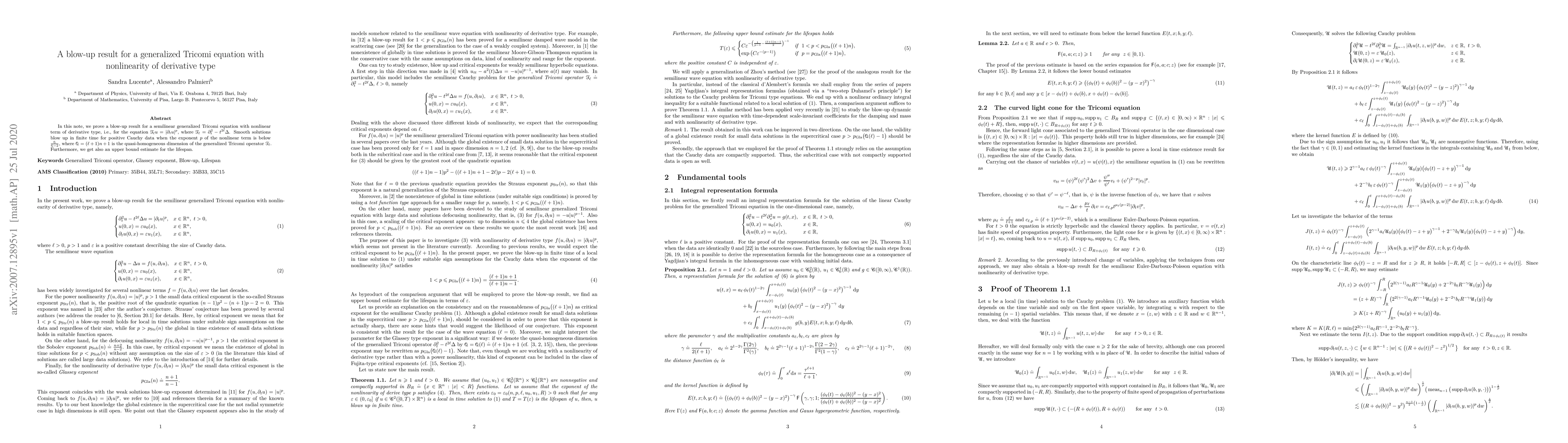 This paper proves a blow-up result for a generalized Tricomi equation with a nonlinear term of derivative type, showing that smooth solutions decay in finite time if the exponent is below a certain threshold.
