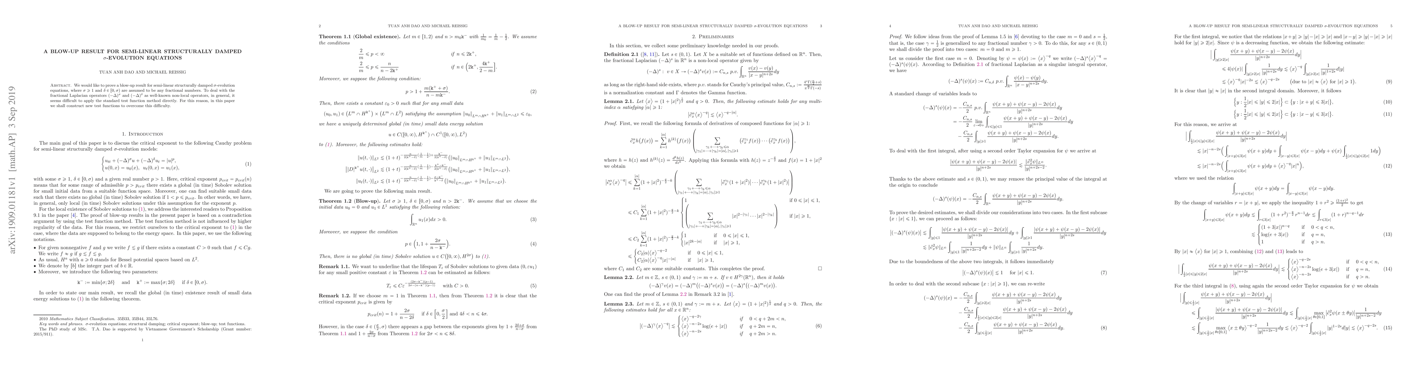 This paper proves a blow-up result for semi-linear structurally damped $\sigma$-evolution equations with fractional parameters $\sigma \ge 1$ and $\delta \in [0,\sigma)$. It introduces new test functions to handle the non-local fractional Laplacian operators, overcoming the limitations of the standard test function method.