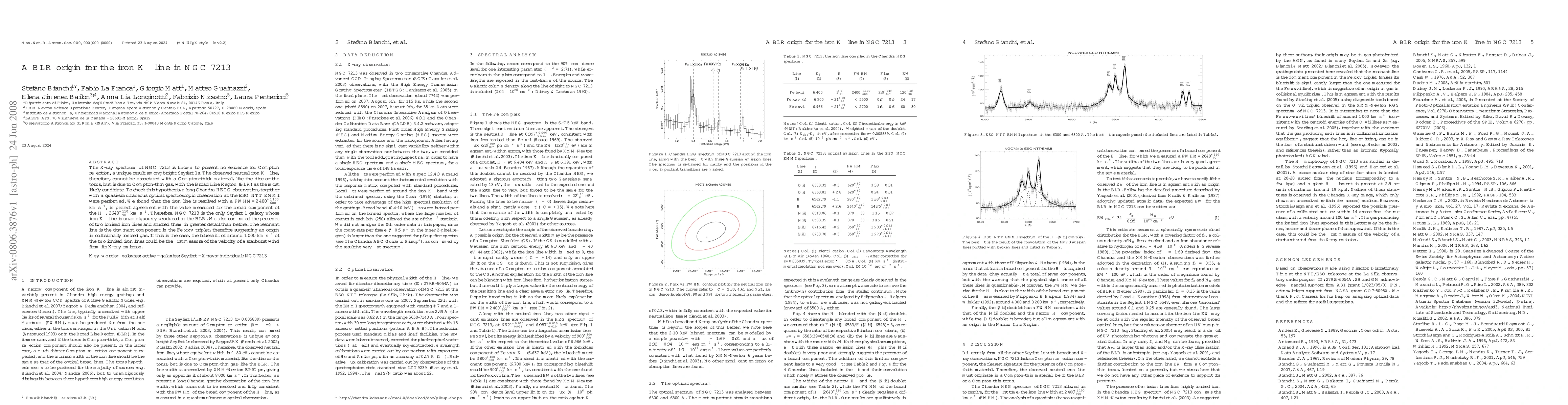 This paper investigates the origin of the iron K$\alpha$ line in NGC7213, finding it originates from the Broad Line Region (BLR) rather than Compton-thick material. The resolved iron line matches the velocity of the broad H$\alpha$ component, confirming the BLR as the source.