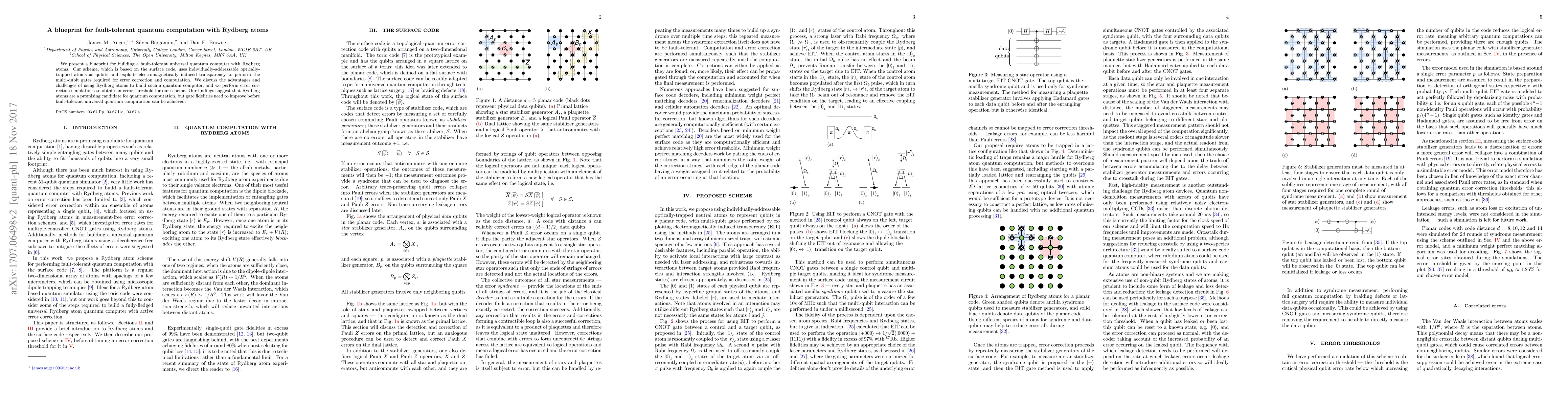 This paper outlines a plan for a fault-tolerant quantum computer using Rydberg atoms, employing the surface code for error correction and multi-qubit gates via electromagnetically induced transparency. While promising, the study highlights the need for improved gate fidelities to achieve universal quantum computation.
