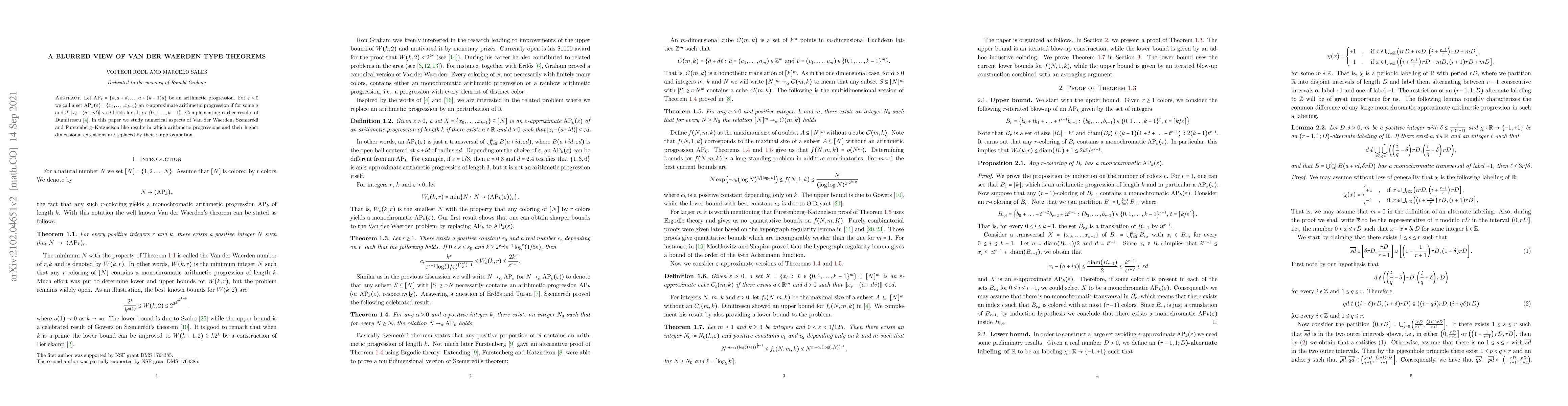 Let $AP_k=\{a,a+d,\ldots,a+(k-1)d\}$ be an arithmetic progression. For $\epsilon>0$ we call a set $AP_k(\epsilon)=\{x_0,\ldots,x_{k-1}\}$ an $\epsilon$-approximate arithmetic progression if for some $a$ and $d$, $|x_i-(a+id)|<\epsilon d$ holds for all $i\in\{0,1\ldots,k-1\}$. Complementing earlier results of Dumitrescu, in this paper we study numerical aspects of Van der Waerden, Szemeredi and Furstenberg-Katznelson like results in which arithmetic progressions and their higher dimensional extensions are replaced by their $\epsilon$-approximation.