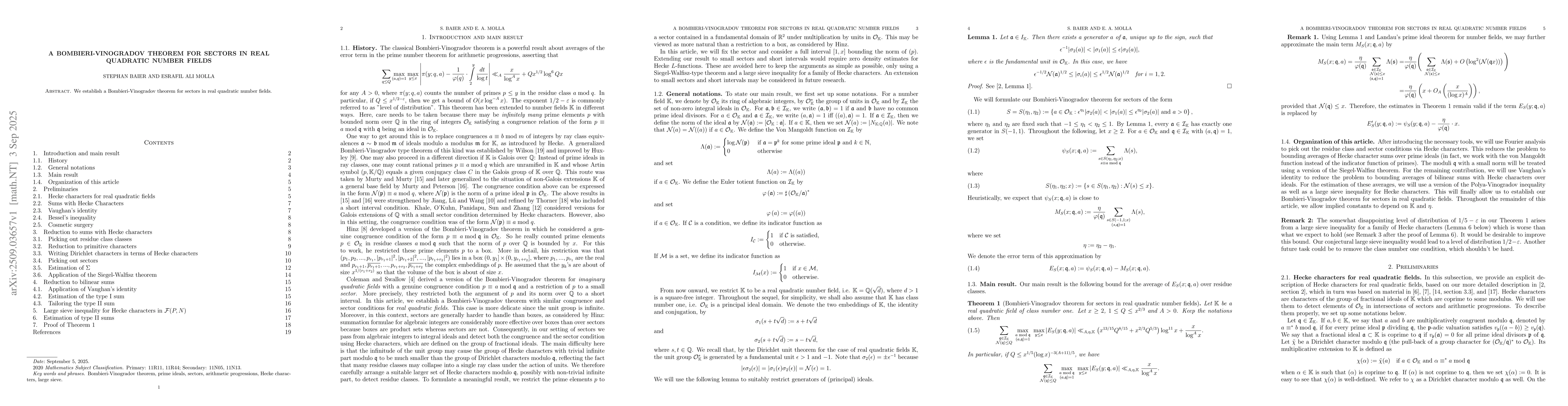 We establish a Bombieri-Vinogradov theorem for sectors in real quadratic number fields.