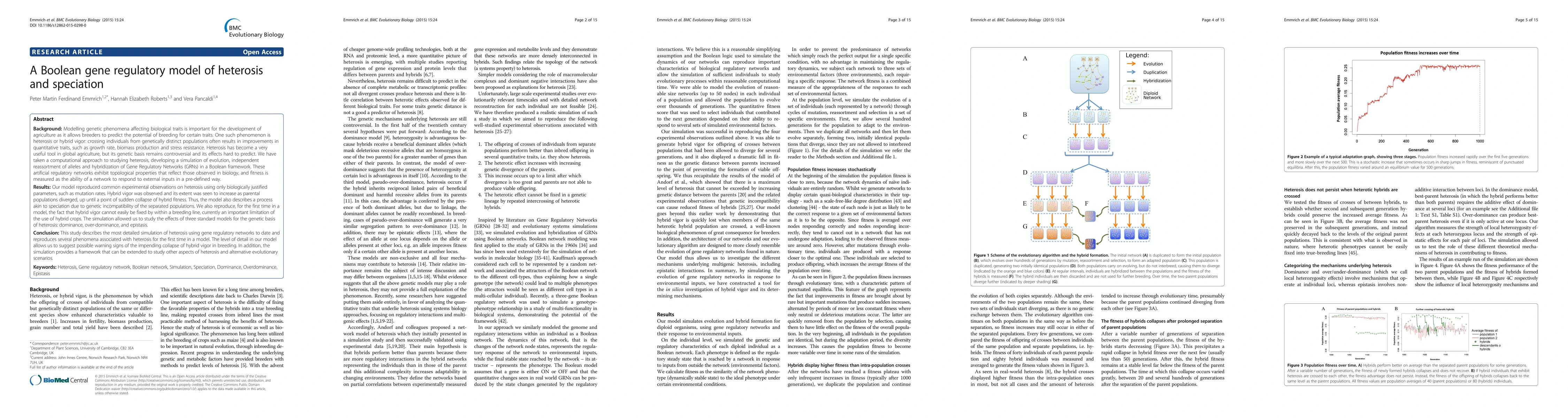 Modelling genetic phenomena affecting biological traits is important for the development of agriculture as it allows breeders to predict the potential of breeding for certain traits. One such phenomenon is heterosis or hybrid vigor: crossing individuals from genetically distinct populations often results in improvements in quantitative traits, such as growth rate, biomass production and stress resistance. Heterosis has become a very useful tool in global agriculture, but its genetic basis remains controversial and its effects hard to predict. We have taken a computational approach to studying heterosis, developing a simulation of evolution, independent reassortment of alleles and hybridization of Gene Regulatory Networks (GRNs) in a Boolean framework. Fitness is measured as the ability of a network to respond to external inputs in a pre-defined way. Our model reproduced common experimental observations on heterosis using only biologically justified parameters. Hybrid vigor was observed and its extent was seen to increase as parental populations diverged, up until a point of sudden collapse of hybrid fitness. We also reproduce, for the first time in a model, the fact that hybrid vigor cannot easily be fixed by within a breeding line, currently an important limitation of the use of hybrid crops. The simulation allowed us to study the effects of three standard models for the genetic basis of heterosis and the level of detail in our model allows us to suggest possible warning signs of the impending collapse of hybrid vigor in breeding. In addition, the simulation provides a framework that can be extended to study other aspects of heterosis and alternative evolutionary scenarios.