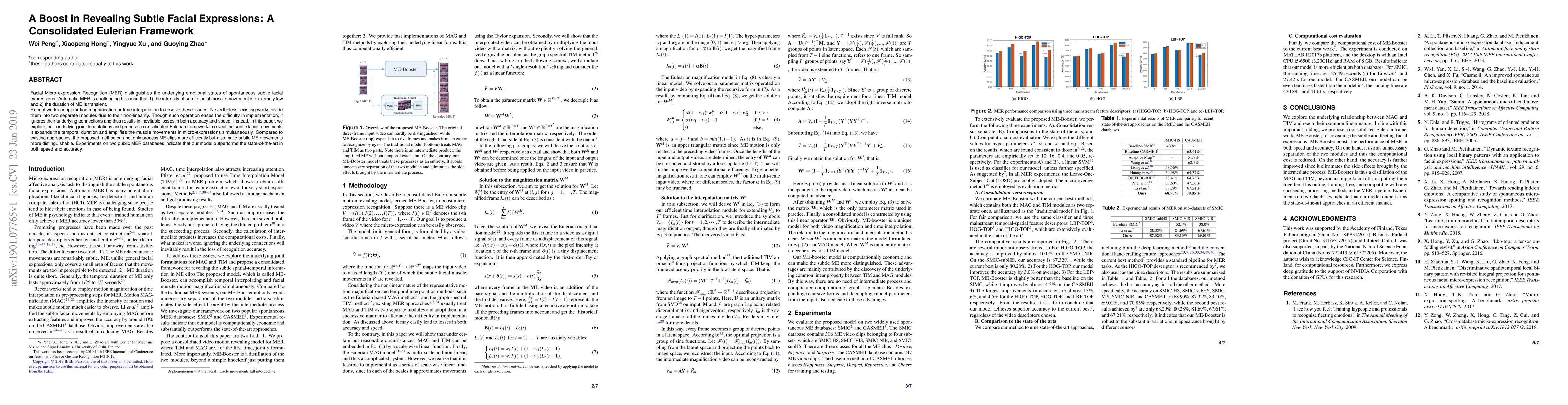 Facial Micro-expression Recognition (MER) distinguishes the underlying emotional states of spontaneous subtle facialexpressions. Automatic MER is challenging because that 1) the intensity of subtle facial muscle movement is extremely lowand 2) the duration of ME is transient.Recent works adopt motion magnification or time interpolation to resolve these issues. Nevertheless, existing works dividethem into two separate modules due to their non-linearity. Though such operation eases the difficulty in implementation, itignores their underlying connections and thus results in inevitable losses in both accuracy and speed. Instead, in this paper, weexplore their underlying joint formulations and propose a consolidated Eulerian framework to reveal the subtle facial movements.It expands the temporal duration and amplifies the muscle movements in micro-expressions simultaneously. Compared toexisting approaches, the proposed method can not only process ME clips more efficiently but also make subtle ME movementsmore distinguishable. Experiments on two public MER databases indicate that our model outperforms the state-of-the-art inboth speed and accuracy.