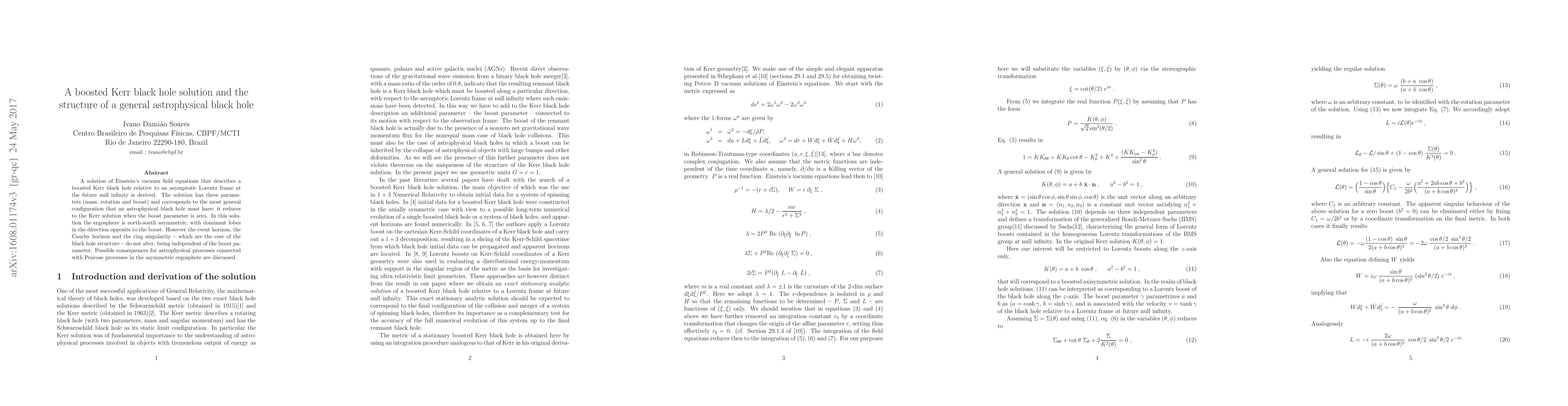 A solution of Einstein's vacuum field equations that describes a boosted Kerr black hole relative to an asymptotic Lorentz frame at the future null infinity is derived. The solution has three parameters (mass, rotation and boost) and corresponds to the most general configuration that an astrophysical black hole must have; it reduces to the Kerr solution when the boost parameter is zero. In this solution the ergosphere is north-south asymmetric, with dominant lobes in the direction opposite to the boost. However the event horizon, the Cauchy horizon and the ring singularity, which are the core of the black hole structure, do not alter, being independent of the boost parameter. Possible consequences for astrophysical processes connected with Penrose processes in the asymmetric ergosphere are discussed.