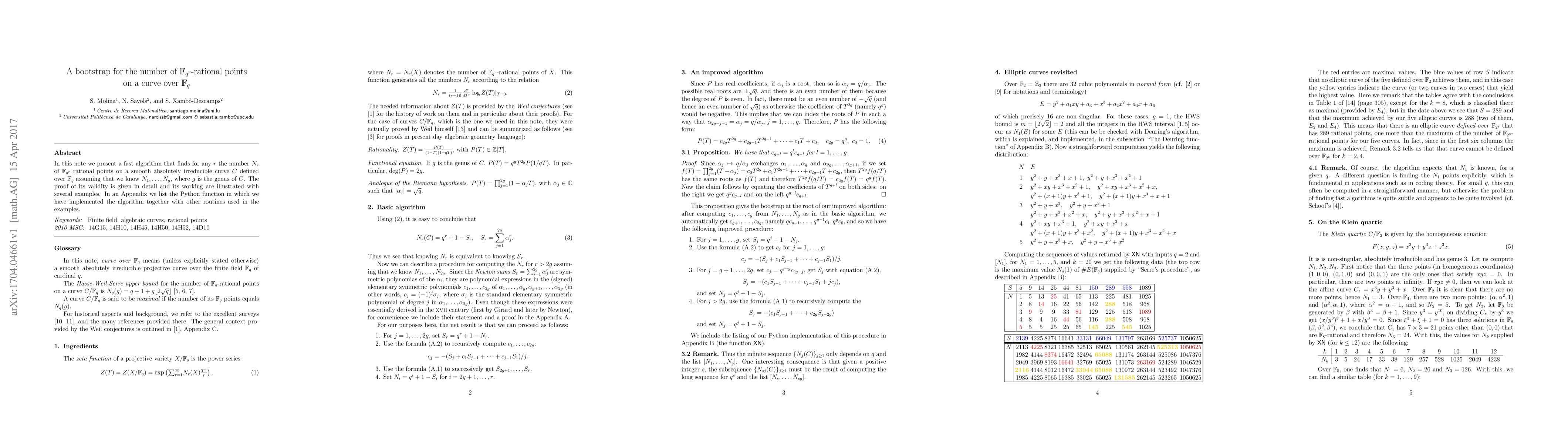 In this note we present a fast algorithm that finds for any $r$ the number $N_r$ of $\mathbb{F}_{q^r}$ rational points on a smooth absolutely irreducible curve $C$ defined over $\mathbb{F}_{q}$ assuming that we know $N_1,\cdots,N_g$, where $g$ is the genus of $C$. The proof of its validity is given in detail and its working are illustrated with several examples. In an Appendix we list the Python function in which we have implemented the algorithm together with other routines used in the examples.