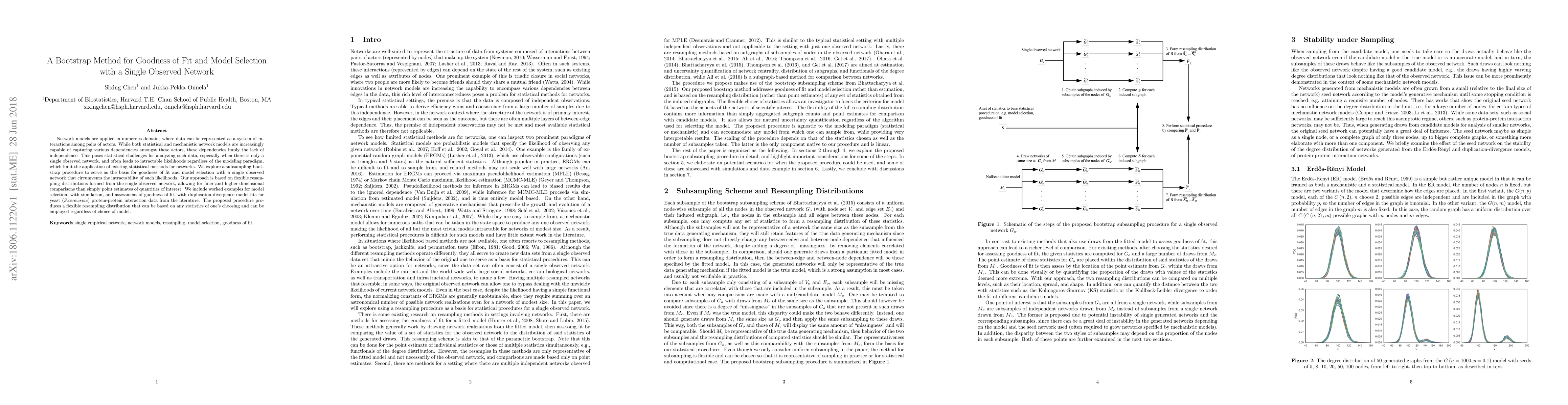 This paper proposes a bootstrap method for assessing goodness of fit and model selection in single observed network data, addressing the statistical challenges posed by dependencies among actors. The method uses flexible resampling distributions from the observed network to enable detailed comparisons, demonstrated through yeast protein-protein interaction data.