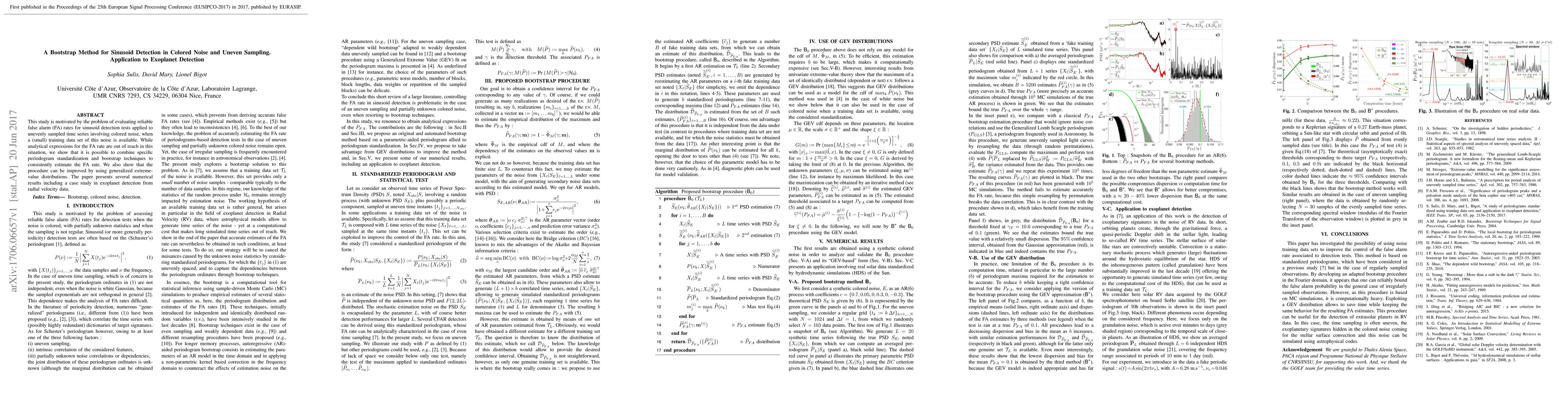 This study is motivated by the problem of evaluating reliable false alarm (FA) rates for sinusoid detection tests applied to unevenly sampled time series involving colored noise, when a (small) training data set of this noise is available. While analytical expressions for the FA rate are out of reach in this situation, we show that it is possible to combine specific periodogram standardization and bootstrap techniques to consistently estimate the FA rate. We also show that the procedure can be improved by using generalized extremevalue distributions. The paper presents several numerical results including a case study in exoplanet detection from radial velocity data.