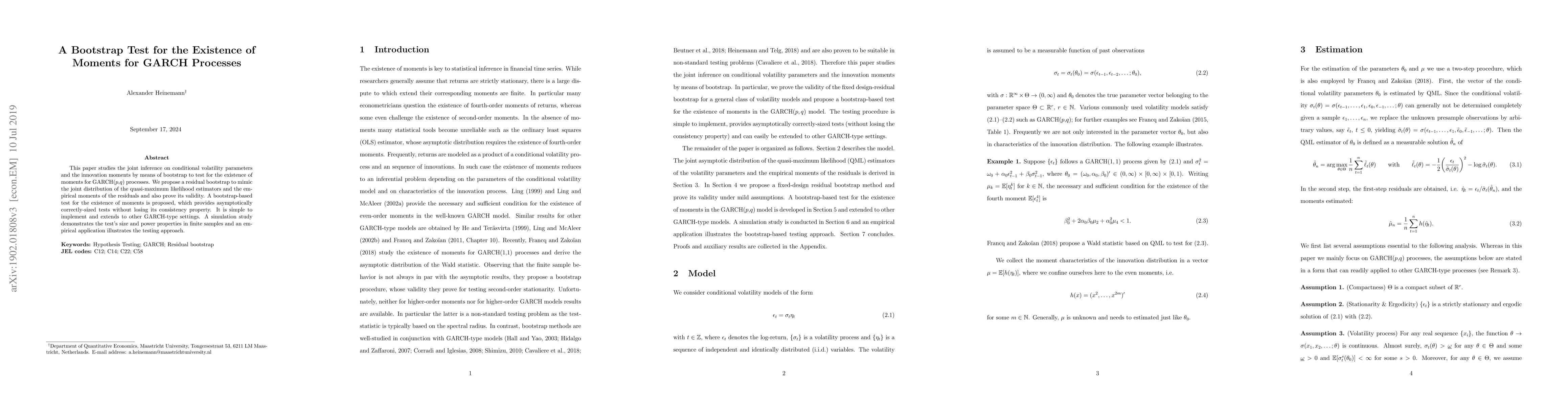 This paper proposes a residual bootstrap method to test for the existence of moments in GARCH(p,q) processes, ensuring asymptotically correct test sizes and consistency. The method is simple to implement and validated through simulations and an empirical application.