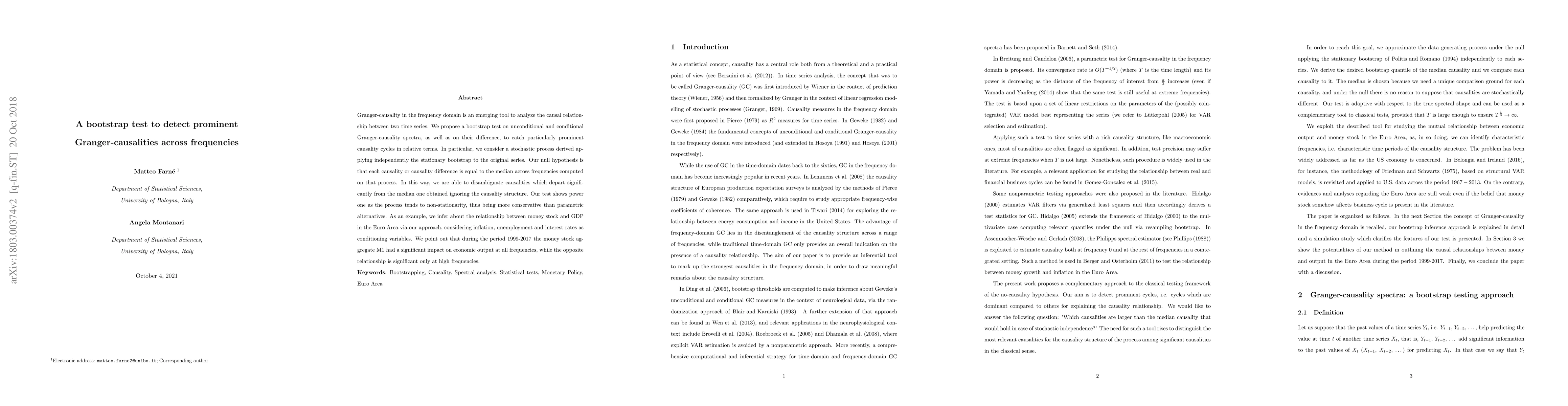 Granger-causality in the frequency domain is an emerging tool to analyze the causal relationship between two time series. We propose a bootstrap test on unconditional and conditional Granger-causality spectra, as well as on their difference, to catch particularly prominent causality cycles in relative terms. In particular, we consider a stochastic process derived applying independently the stationary bootstrap to the original series. Our null hypothesis is that each causality or causality difference is equal to the median across frequencies computed on that process. In this way, we are able to disambiguate causalities which depart significantly from the median one obtained ignoring the causality structure. Our test shows power one as the process tends to non-stationarity, thus being more conservative than parametric alternatives. As an example, we infer about the relationship between money stock and GDP in the Euro Area via our approach, considering inflation, unemployment and interest rates as conditioning variables. We point out that during the period 1999-2017 the money stock aggregate M1 had a significant impact on economic output at all frequencies, while the opposite relationship is significant only at high frequencies.