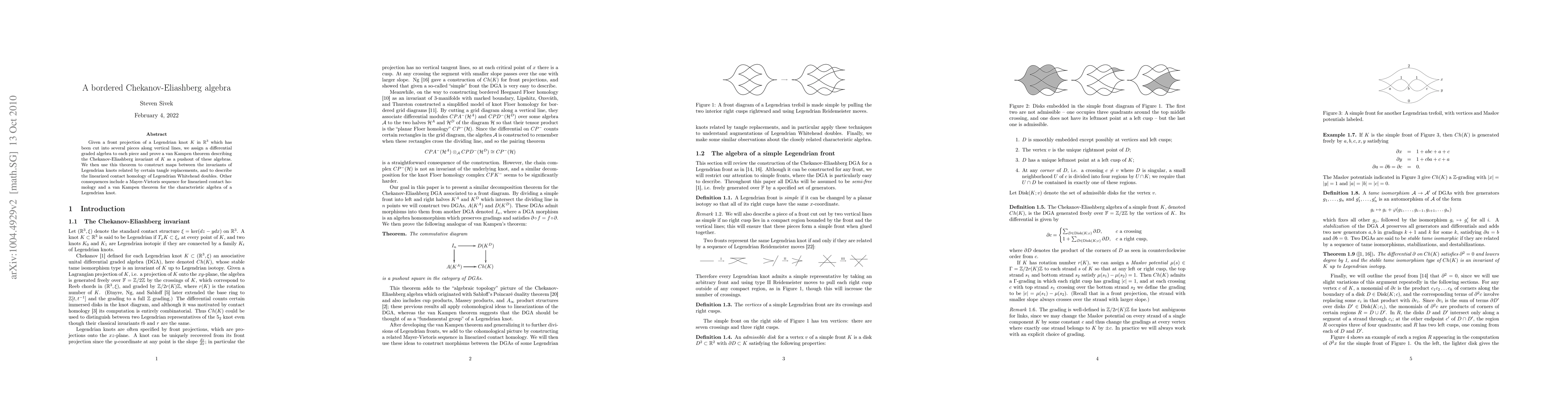 This paper introduces a bordered Chekanov-Eliashberg algebra for Legendrian knots in $\mathbb{R}^{3}$, proving a van Kampen theorem for their pushout and constructing maps for related tangle replacements. It also provides a Mayer-Vietoris sequence and a van Kampen theorem for the characteristic algebra.