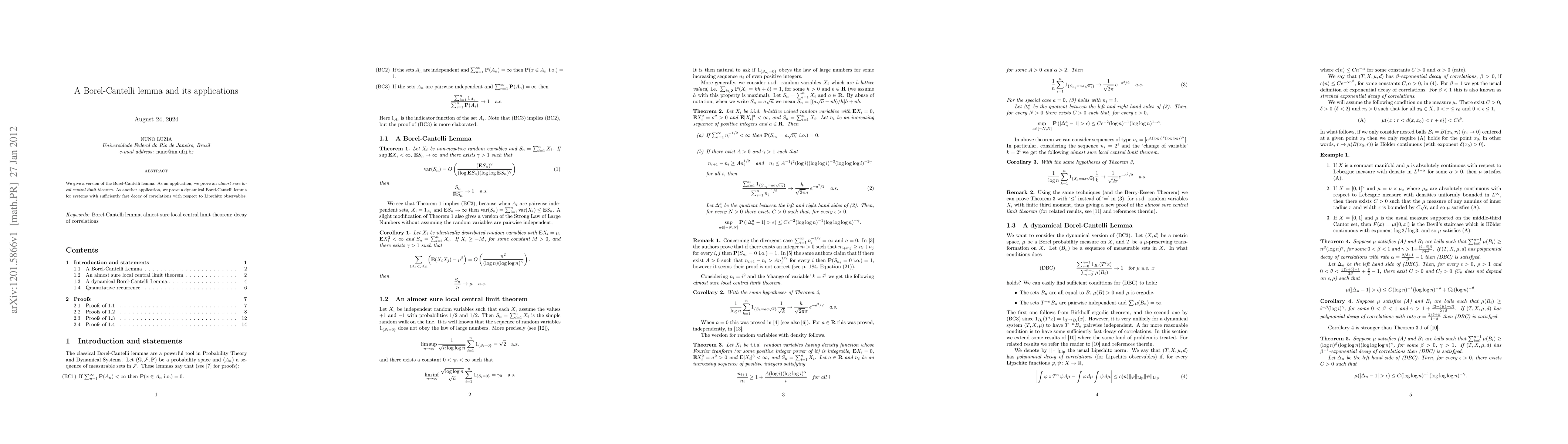 Summary: This paper presents a version of the Borel-Cantelli lemma and demonstrates its applications, including proving an almost sure local central limit theorem and a dynamical Borel-Cantelli lemma for systems with rapid decay of correlations concerning Lipschitz observables.