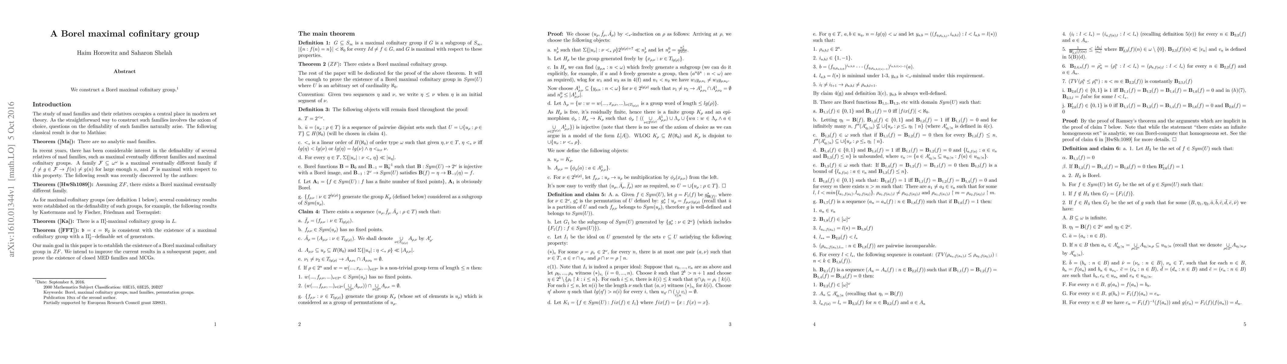 Summary: This paper introduces a construction of a Borel maximal cofinitary group, contributing to the understanding of group theory within the framework of descriptive set theory.