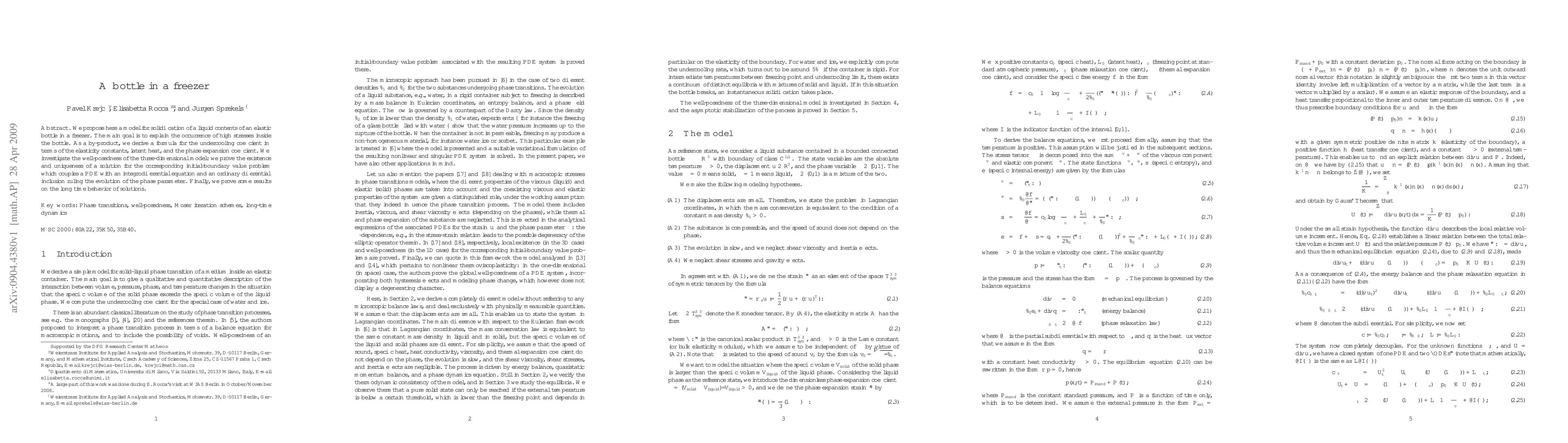 Researchers propose a model to explain high stresses in elastic bottles frozen in liquid contents, deriving a formula for undercooling coefficient and investigating long-term behavior of solutions.