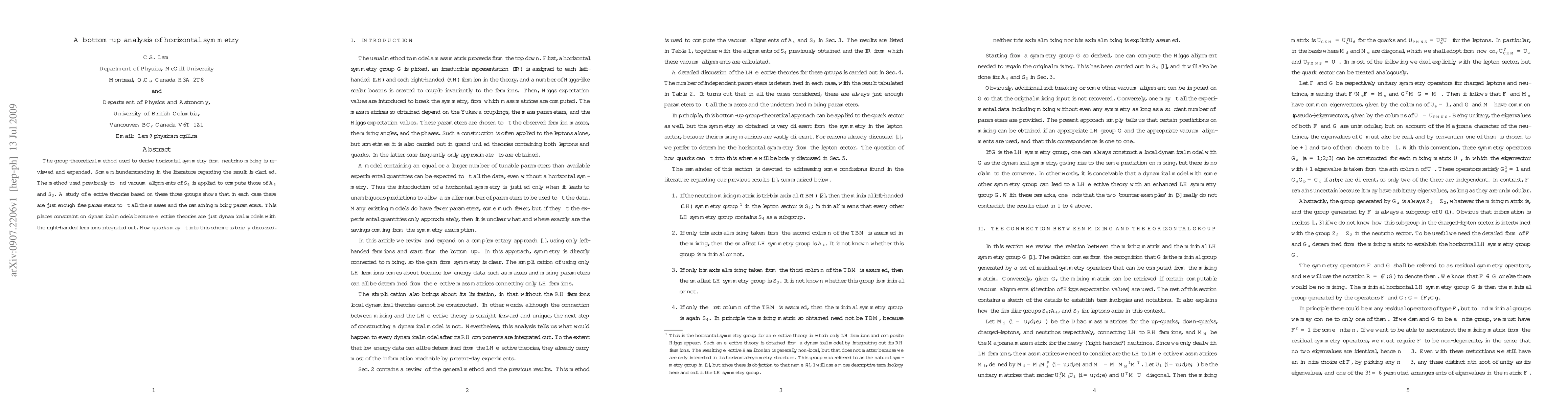 The group-theoretical method used to derive horizontal symmetry from neutrino mixing is reviewed and expanded. Some misunderstanding in the literature regarding the result is clarified. The method used previously to find vacuum alignments of $S_4$ is applied to compute those of $A_4$ and $S_3$. A study of effective theories based on these three groups shows that in each case there are just enough free parameters to fit all the masses and the remaining mixing parameters. This places constraint on dynamical models because effective theories are just dynamical models with the right-handed fermions integrated out. How quarks may fit into this scheme is briefly discussed.