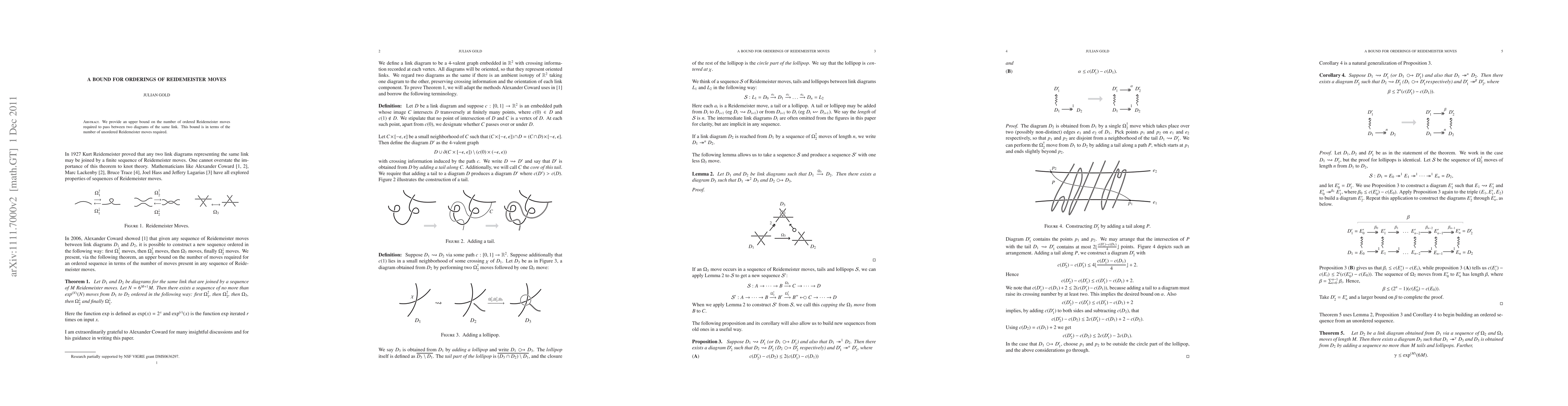 Summary: This paper establishes an upper bound on the number of ordered Reidemeister moves necessary to transform one link diagram into another, expressed in terms of the number of unordered Reidemeister moves. The result provides insight into the complexity of link transformations.