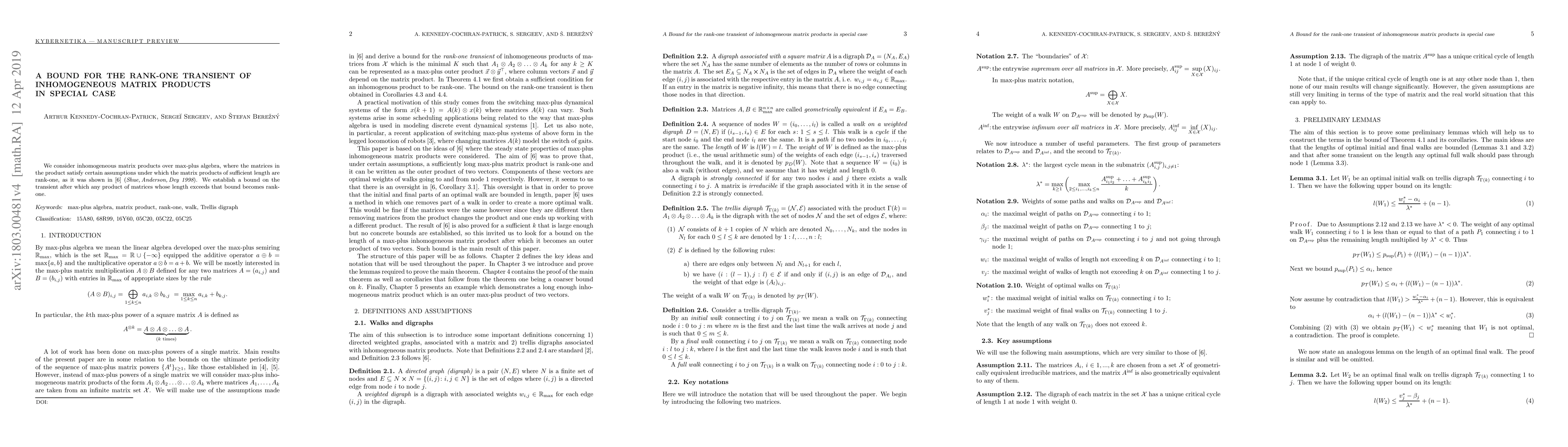 We consider inhomogeneous matrix products over max-plus algebra, where the matrices in the product satisfy certain assumptions under which the matrix products of sufficient length be rank-one, as it was shown in [6][L. Shue, B.D.O. Anderson, S. Dey: On steady state properties of certain max-plus products. Proceedings of the American Control Conference, Philadelphia, Pensylvania, (June 1998), 1909 1913.]. We establish a bound on the transient after which this starts to happen for any product of matrices whose length exceeds that bound.