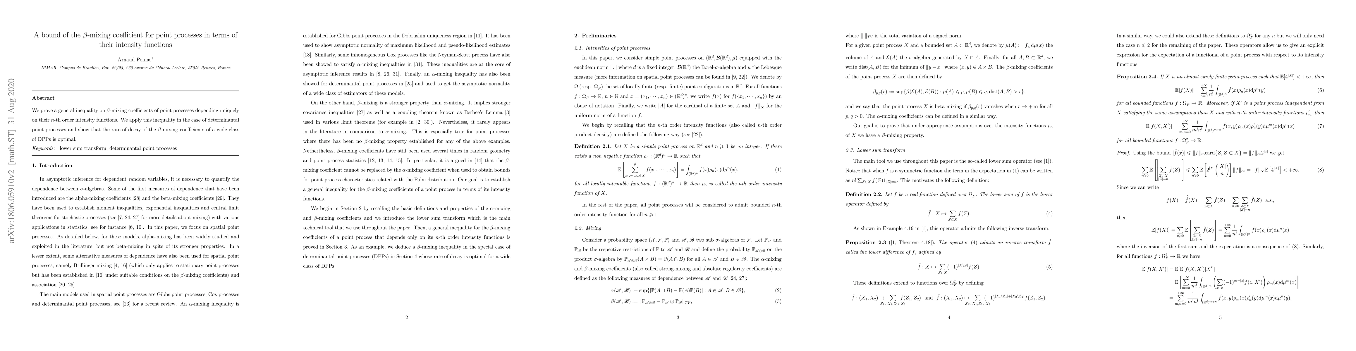 We prove a general inequality on $\beta$-mixing coefficients of point processes depending uniquely on their $n$-th order intensity functions. We apply this inequality in the case of determinantal point processes and show that the rate of decay of the $\beta$-mixing coefficients of a wide class of DPPs is optimal.