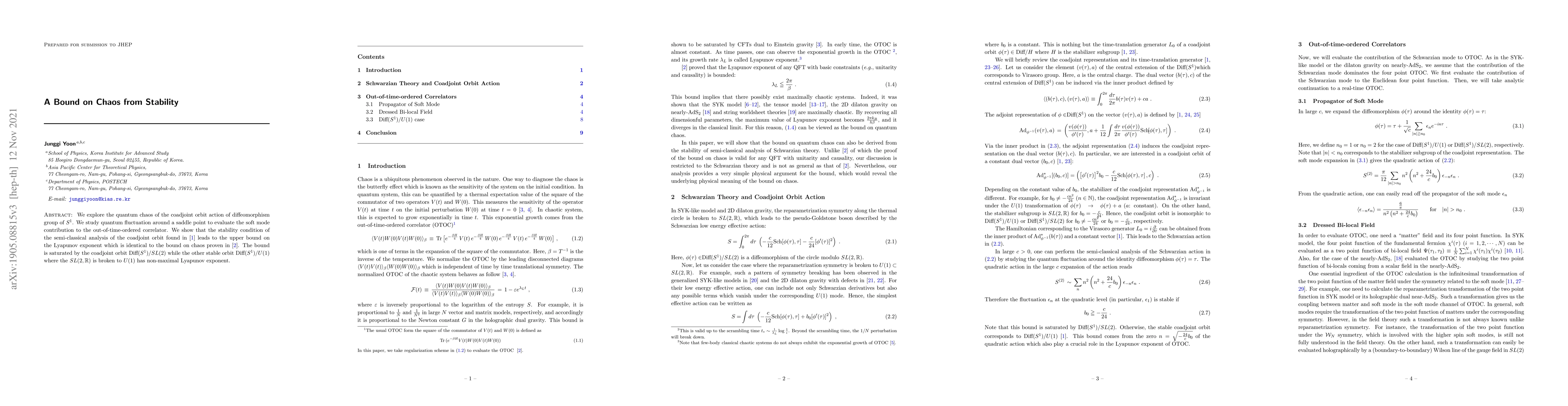 We explore the quantum chaos of the coadjoint orbit action. We study quantum fluctuation around a saddle point to evaluate the soft mode contribution to the out-of-time-ordered correlator. We show that the stability condition of the semi-classical analysis of the coadjoint orbit found by Witten (1988) leads to the upper bound on the Lyapunov exponent which is identical to the bound on chaos proven in arXiv:1503.01409. The bound is saturated by the coadjoint orbit $\text{Diff}(S^1)/SL(2)$ while the other stable orbit $\text{Diff}(S^1)/U(1)$ where the $SL(2,\mathbb{R})$ is broken to $U(1)$ has non-maximal Lyapunov exponent.