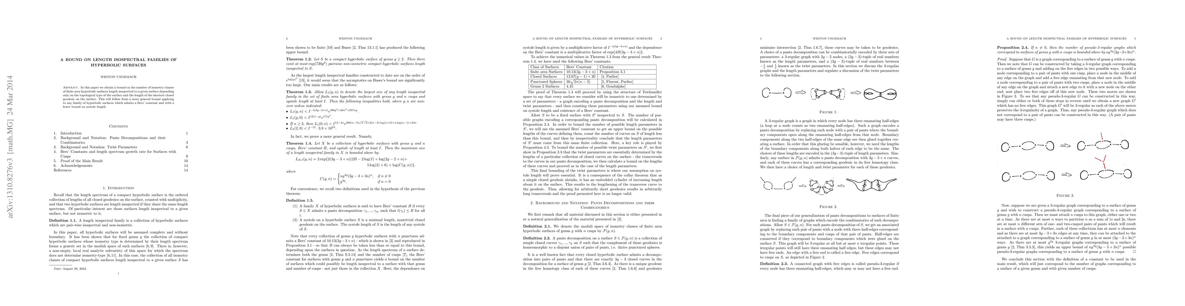 This paper establishes a limit on the number of finite-area hyperbolic surfaces that share the same geodesic lengths as a given surface, solely based on the surface's topology and the length of its shortest closed geodesic. The result is derived from a broader bound applicable to any such hyperbolic surface family with a defined Bers' constant and a minimum systole length.