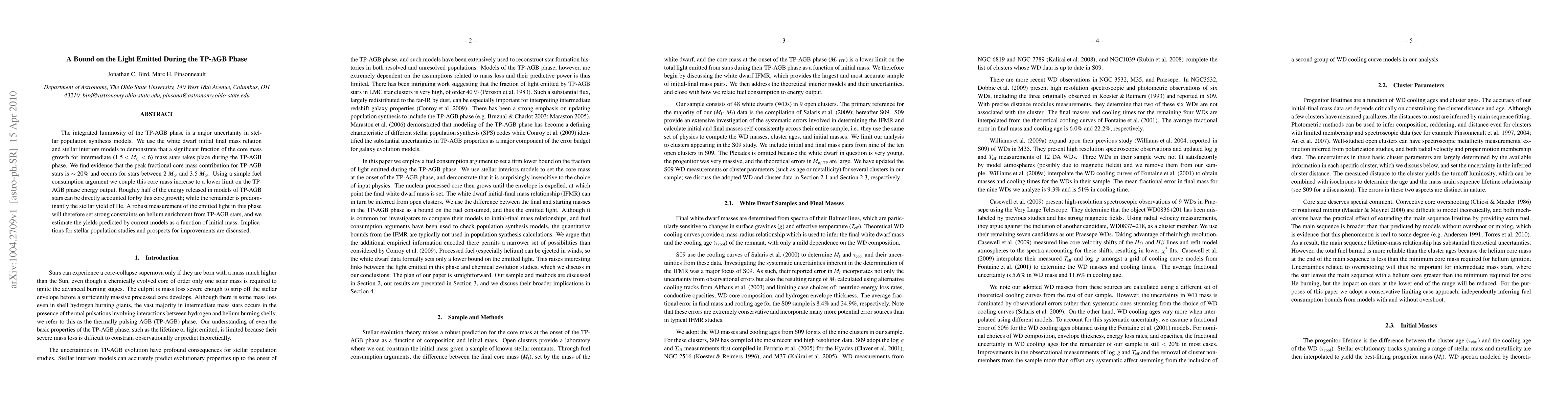 The integrated luminosity of the TP-AGB phase is a major uncertainty in stellar population synthesis models. We use the white dwarf initial final mass relation and stellar interiors models to demonstrate that a significant fraction of the core mass growth for intermediate (1.5 < Msun < 6) mass stars takes place during the TP-AGB phase. We find evidence that the peak fractional core mass contribution for TP-AGB stars is ~20% and occurs for stars between 2 Msun and 3.5 Msun. Using a simple fuel consumption argument we couple this core mass increase to a lower limit on the TP-AGB phase energy output. Roughly half of the energy released in models of TP-AGB stars can be directly accounted for by this core growth; while the remainder is predominantly the stellar yield of He. A robust measurement of the emitted light in this phase will therefore set strong constraints on helium enrichment from TP-AGB stars, and we estimate the yields predicted by current models as a function of initial mass. Implications for stellar population studies and prospects for improvements are discussed.