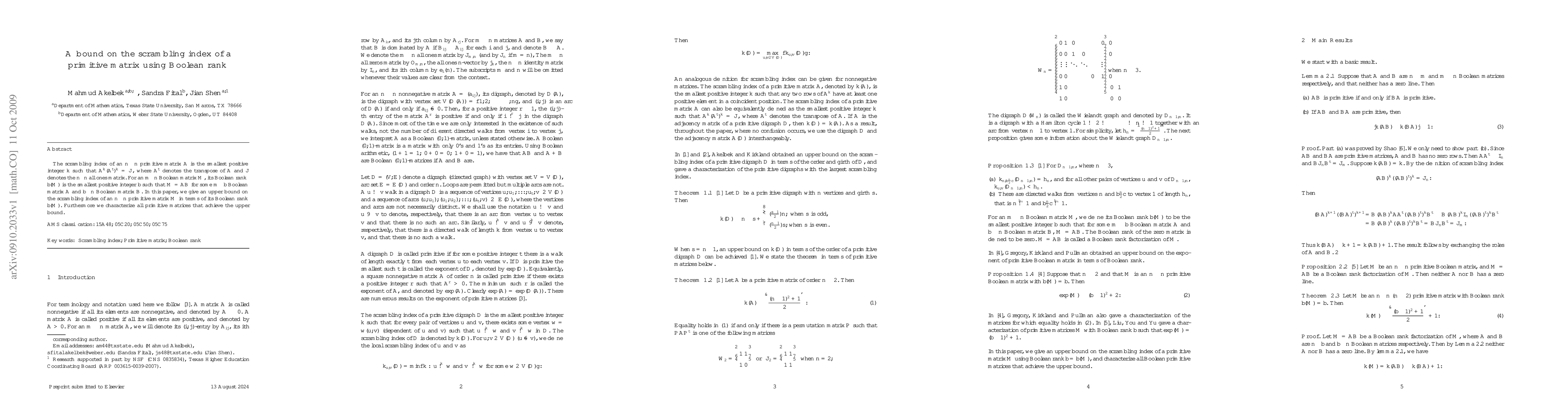 This paper establishes an upper bound on the scrambling index of a primitive matrix in terms of its Boolean rank and identifies all primitive matrices that achieve this bound. The scrambling index is the smallest integer $k$ for which the matrix raised to the power $k$ and its transpose raised to the power $k$ equal the all-ones matrix.