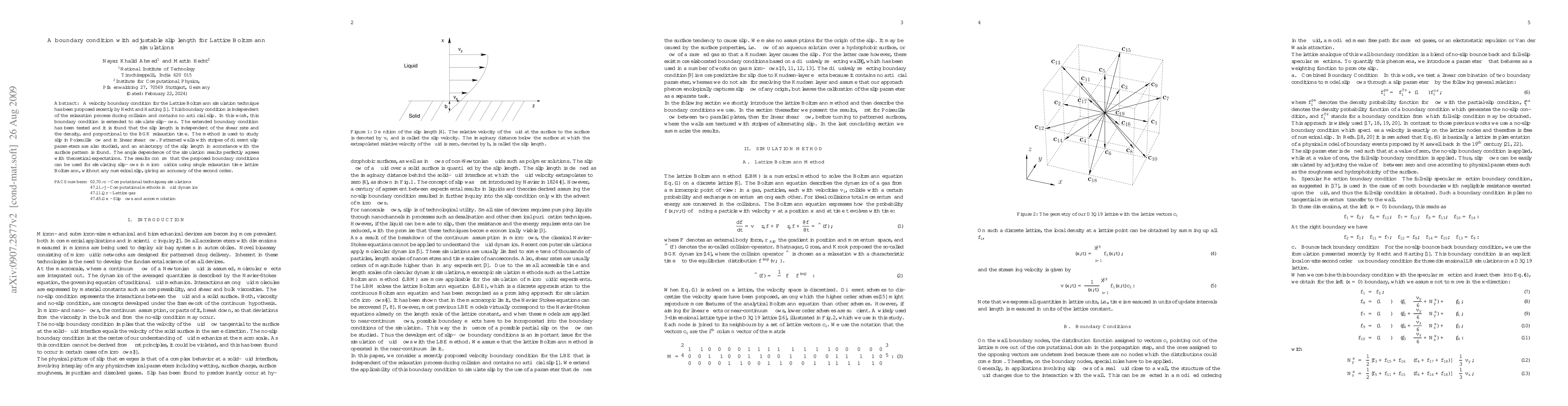 A velocity boundary condition for the Lattice Boltzmann simulation technique has been proposed recently by Hecht and Harting[arxiv:0811.4593]. This boundary condition is independent of the relaxation process during collision and contains no artificial slip. In this work, this boundary condition is extended to simulate slip-flows. The extended boundary condition has been tested and it is found that the slip length is independent of the shear rate and the density, and proportional to the BGK relaxation time. The method is used to study slip in Poiseuille flow and in linear shear flow. Patterned walls with stripes of different slip parameters are also studied, and an anisotropy of the slip length in accordance with the surface pattern is found. The angle dependence of the simulation results perfectly agrees with theoretical expectations. The results confirm that the proposed boundary conditions can be used for simulating slip-flows in micro fluidics using single relaxation time lattice Boltzmann, without any numerical slip, giving an accuracy of the second order.