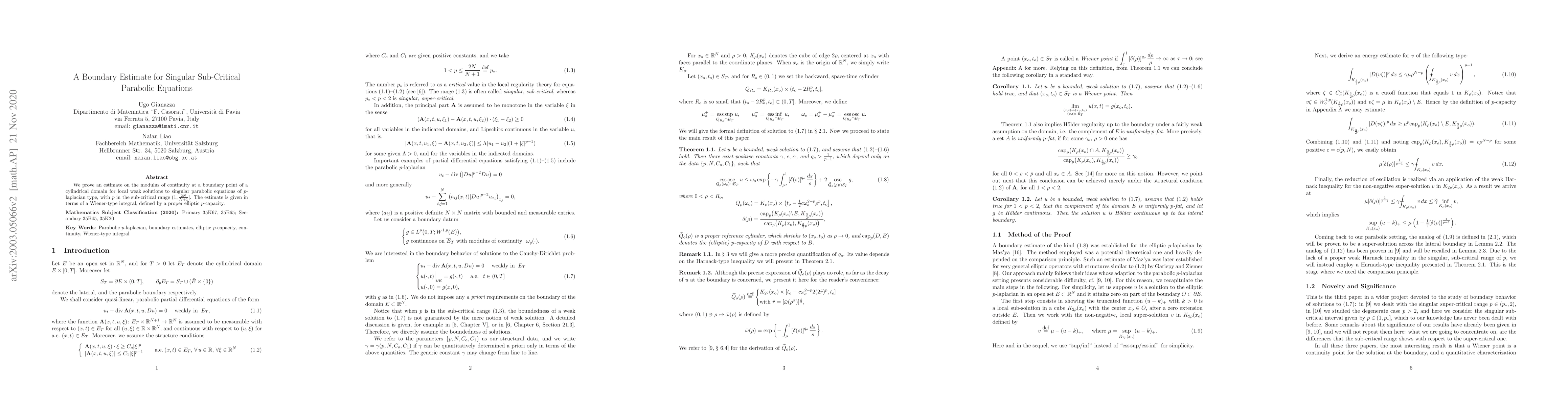 We prove an estimate on the modulus of continuity at a boundary point of a cylindrical domain for local weak solutions to singular parabolic equations of $p$-laplacian type, with $p$ in the sub-critical range $(1,\frac{2N}{N+1}]$. The estimate is given in terms of a Wiener-type integral, defined by a proper elliptic $p$-capacity.