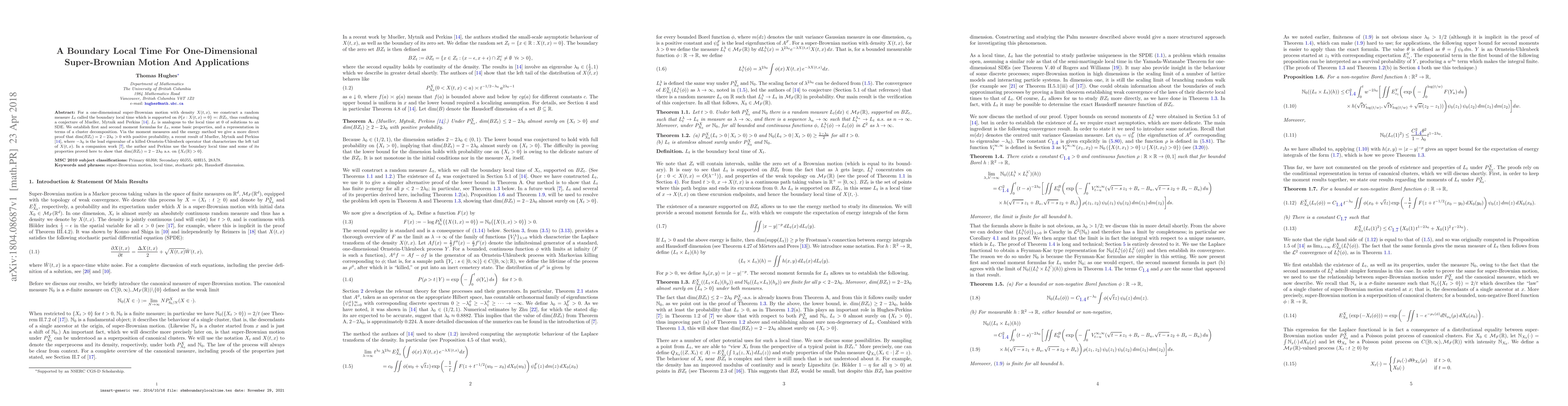 This paper constructs a boundary local time $L_t$ for one-dimensional super-Brownian motion, confirming a conjecture and establishing its first and second moment formulas. It also proves that the dimension of the boundary set $BZ_t$ is $2-2\lambda_0 > 0$ with positive probability, extending recent results.
