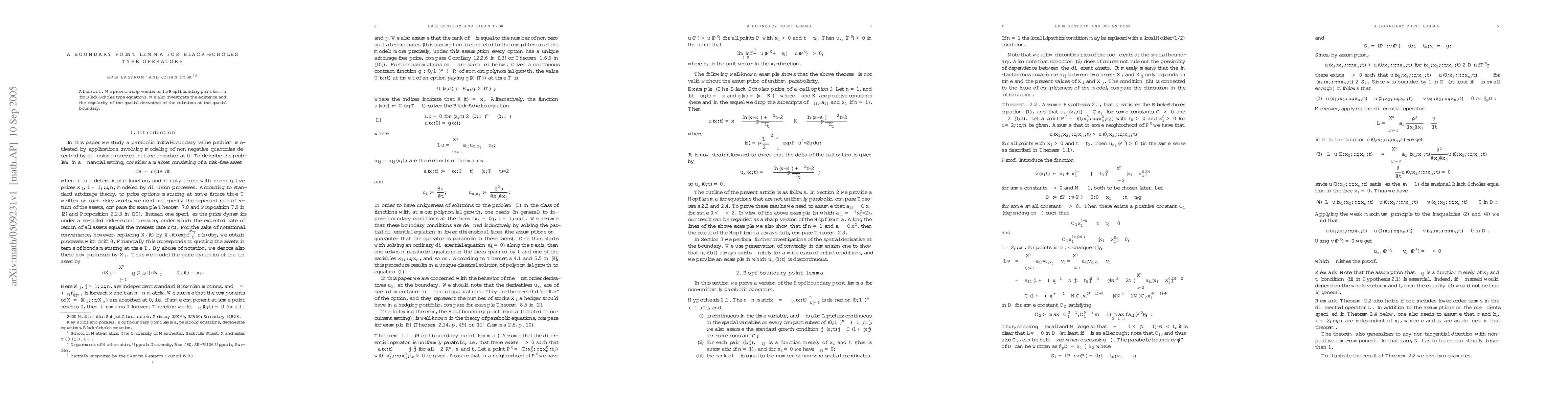 Summary: This paper proves a sharp Hopf boundary point lemma for Black-Scholes type operators and examines the existence and regularity of the spatial derivative of solutions at the boundary.
