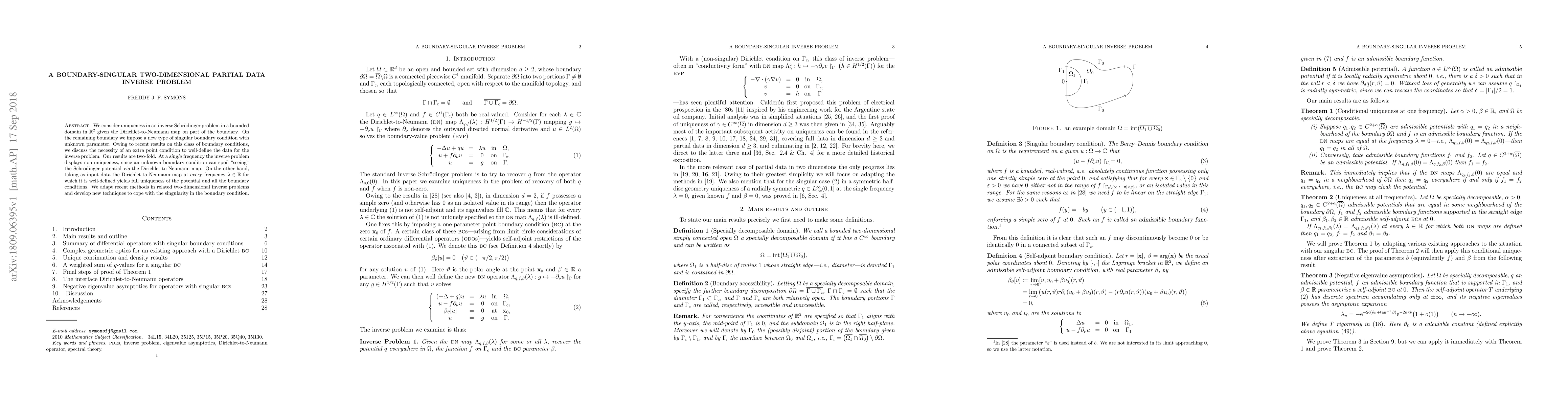 We consider uniqueness in an inverse Schr\"odinger problem in a bounded domain in $\mathbb{R}^2$ given the Dirichlet-to-Neumann map on part of the boundary. On the remaining boundary we impose a new type of singular boundary condition with unknown parameter. Owing to recent results on this class of boundary conditions, we discuss the necessity of an extra point condition to well-define the data for the inverse problem. Our results are two-fold. At a single frequency the inverse problem displays non-uniqueness, since an unknown boundary condition can spoil `seeing' the Schr\"odinger potential via the Dirichlet-to-Neumann map. On the other hand, taking as input data the Dirichlet-to-Neumann map at every frequency $\lambda\in\mathbb{R}$ for which it is well-defined yields full uniqueness of the potential and all the boundary conditions. We adapt recent methods in related two-dimensional inverse problems and develop new techniques to cope with the singularity in the boundary condition.