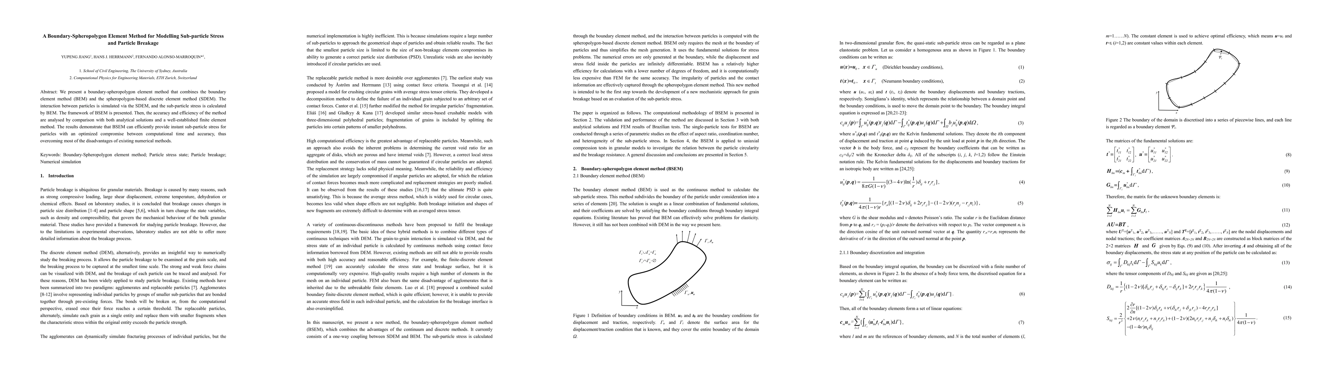 The paper introduces a boundary-spheropolygon element method (BSEM) that combines the boundary integral method for stress calculation and the spheropolygon-based discrete element method for particle interaction. BSEM efficiently determines sub-particle stress and models particle breakage, outperforming existing methods in computational efficiency and accuracy.