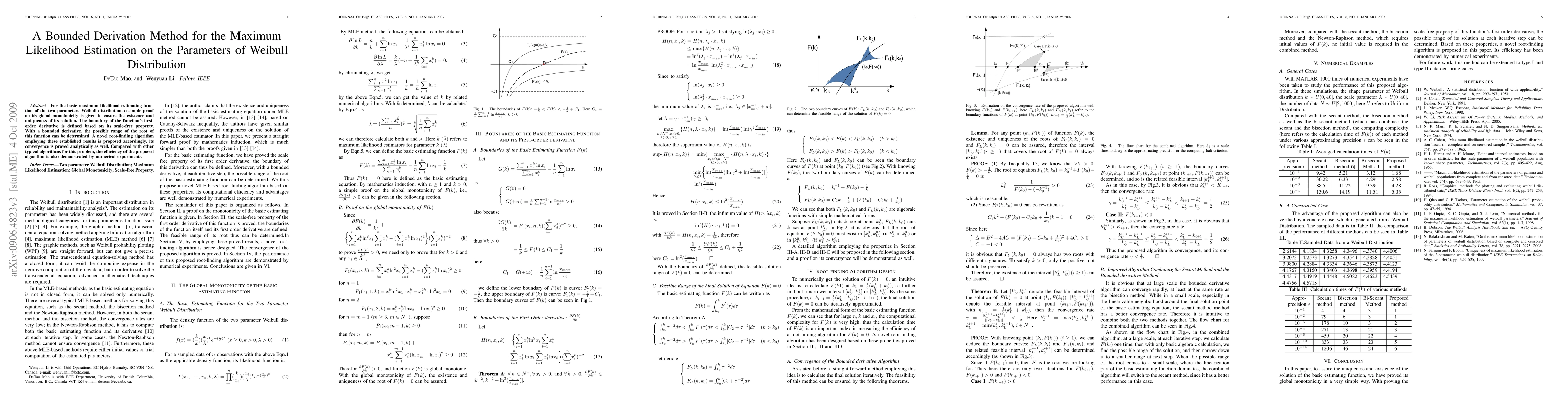 This paper presents a new method for estimating Weibull distribution parameters using maximum likelihood, proving the global monotonicity of the estimating function and defining its bounded derivative. A novel root-finding algorithm is proposed, analytically proven to converge, and shown to be more efficient than typical methods through numerical experiments.