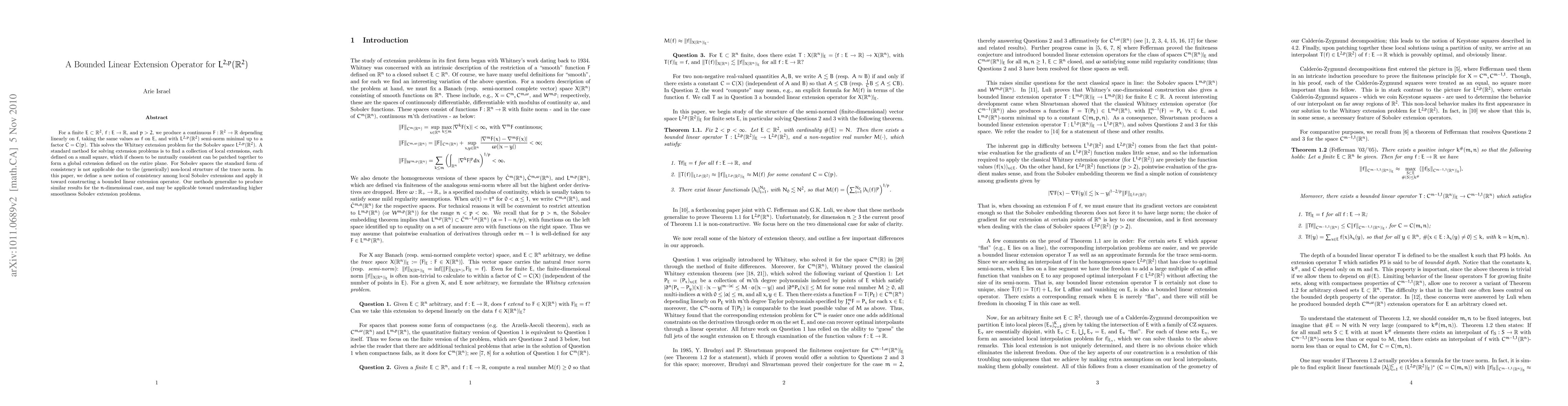 Researchers developed a method to extend functions in Sobolev space $L^{2,p}( ext{R}^2)$ while maintaining minimal semi-norm, solving the Whitney extension problem for this space.