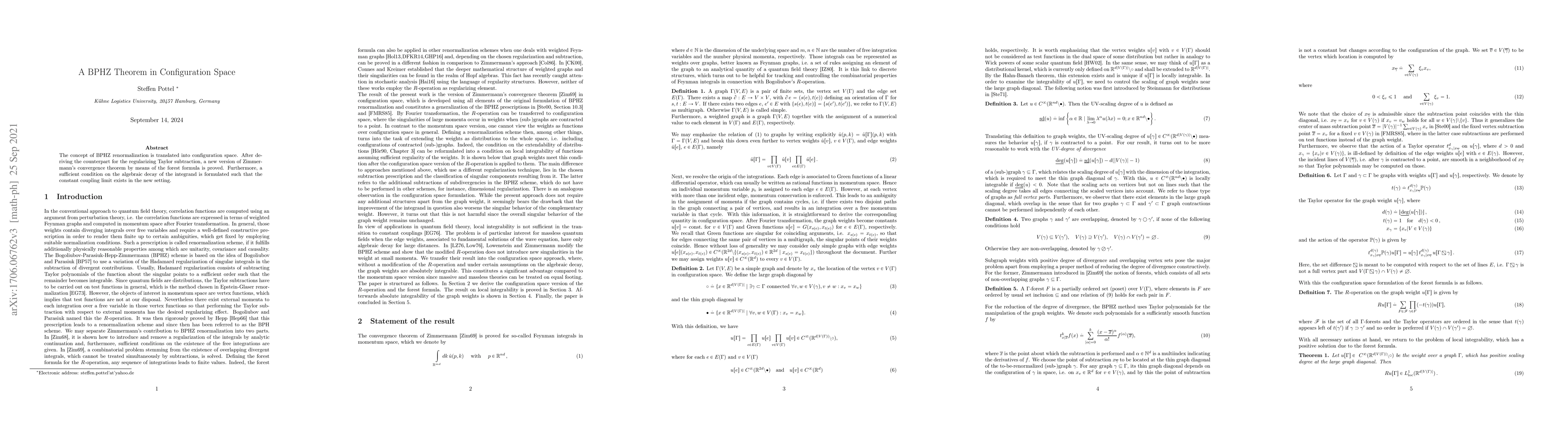 This paper translates the BPHZ renormalization theorem into configuration space, deriving a configuration space version of Taylor subtraction. It proves Zimmermann's convergence theorem via the forest formula and establishes a sufficient condition for the existence of the constant coupling limit under algebraic decay of the integrand.