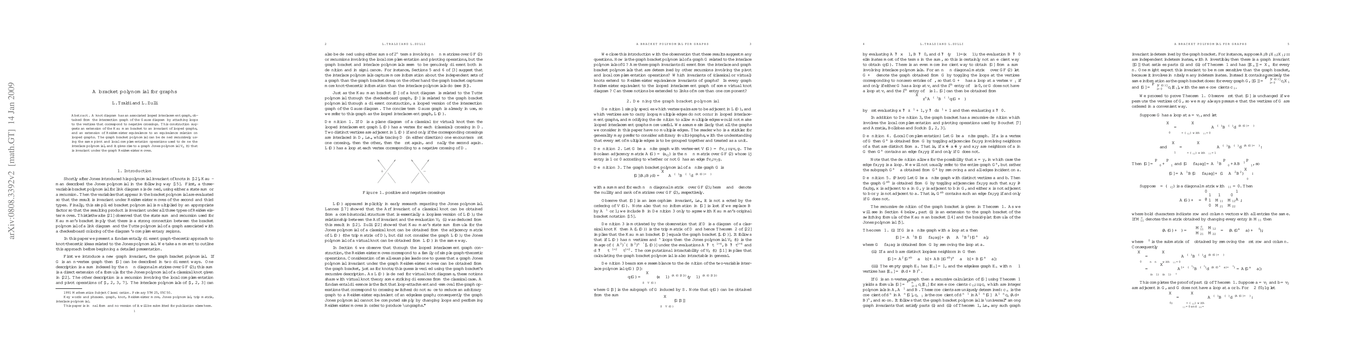 A knot diagram has an associated looped interlacement graph, obtained from the intersection graph of the Gauss diagram by attaching loops to the vertices that correspond to negative crossings. This construction suggests an extension of the Kauffman bracket to an invariant of looped graphs, and an extension of Reidemeister equivalence to an equivalence relation on looped graphs. The graph bracket polynomial can be defined recursively using the same pivot and local complementation operations used to define the interlace polynomial, and it gives rise to a graph Jones polynomial that is invariant under the graph Reidemeister moves.