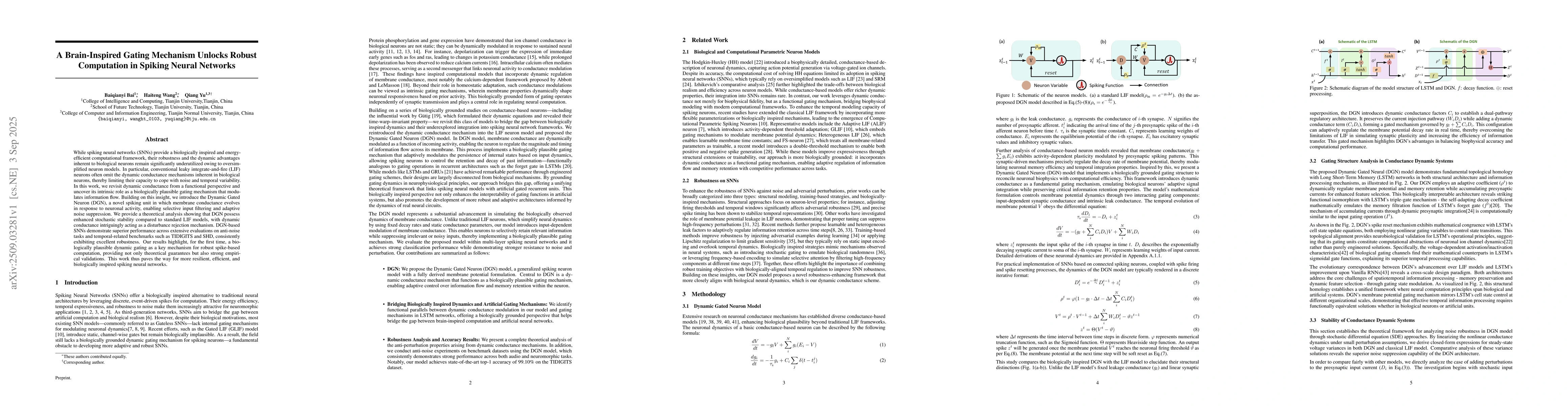 While spiking neural networks (SNNs) provide a biologically inspired and energy-efficient computational framework, their robustness and the dynamic advantages inherent to biological neurons remain significantly underutilized owing to oversimplified neuron models. In particular, conventional leaky integrate-and-fire (LIF) neurons often omit the dynamic conductance mechanisms inherent in biological neurons, thereby limiting their capacity to cope with noise and temporal variability. In this work, we revisit dynamic conductance from a functional perspective and uncover its intrinsic role as a biologically plausible gating mechanism that modulates information flow. Building on this insight, we introduce the Dynamic Gated Neuron~(DGN), a novel spiking unit in which membrane conductance evolves in response to neuronal activity, enabling selective input filtering and adaptive noise suppression. We provide a theoretical analysis showing that DGN possess enhanced stochastic stability compared to standard LIF models, with dynamic conductance intriguingly acting as a disturbance rejection mechanism. DGN-based SNNs demonstrate superior performance across extensive evaluations on anti-noise tasks and temporal-related benchmarks such as TIDIGITS and SHD, consistently exhibiting excellent robustness. Our results highlight, for the first time, a biologically plausible dynamic gating as a key mechanism for robust spike-based computation, providing not only theoretical guarantees but also strong empirical validations. This work thus paves the way for more resilient, efficient, and biologically inspired spiking neural networks.