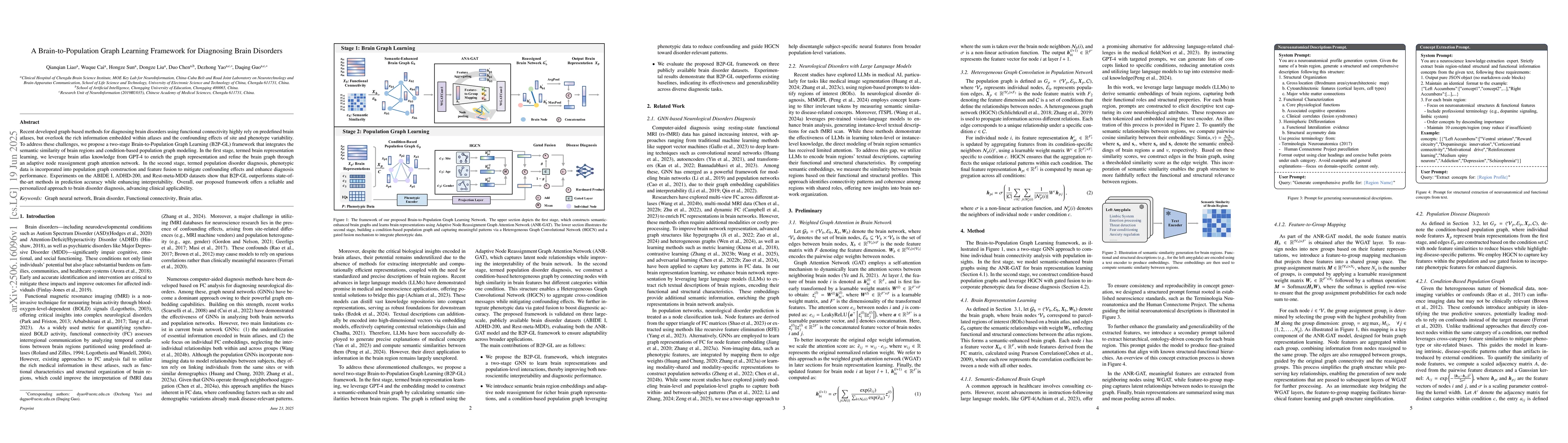 The research introduces Brain-to-Population Graph Learning (B2P-GL), a two-stage framework for diagnosing brain disorders. It leverages GPT-4 knowledge to refine brain graphs and incorporates phenotypic data to construct population graphs, outperforming existing methods in accuracy and interpretability on ABIDE I, ADHD-200, and Rest-meta-MDD datasets.