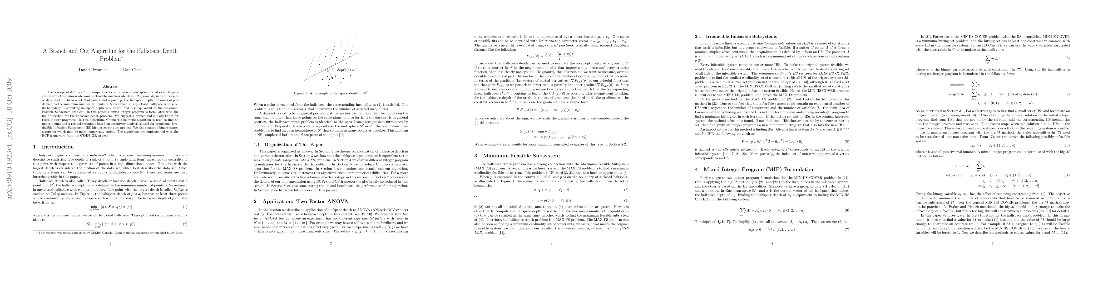 This paper presents a branch and cut algorithm for solving the NP-hard halfspace depth problem, which measures the depth of a point in a set of multivariate data points. The algorithm uses a mixed integer program, with heuristics for finding upper bounds and branching, and applies irreducible infeasible subsystem cuts for efficiency.