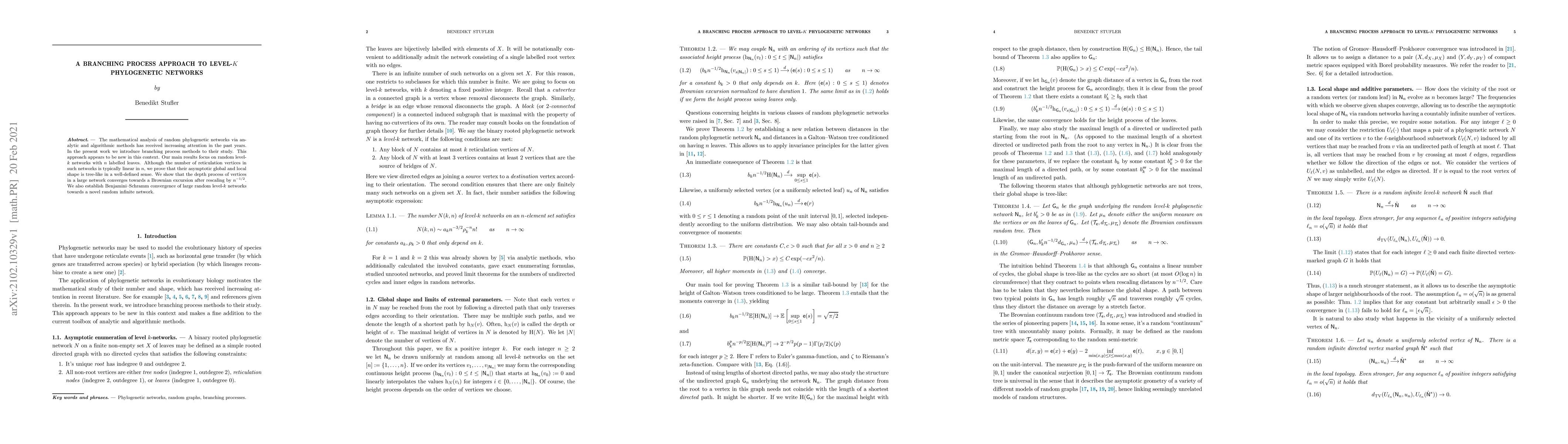 This paper introduces branching process methods for analyzing random phylogenetic networks, particularly focusing on level-$k$ networks. The study proves that despite a linear increase in reticulation vertices, the networks' asymptotic shape is tree-like, and demonstrates convergence of the depth process to a Brownian excursion.