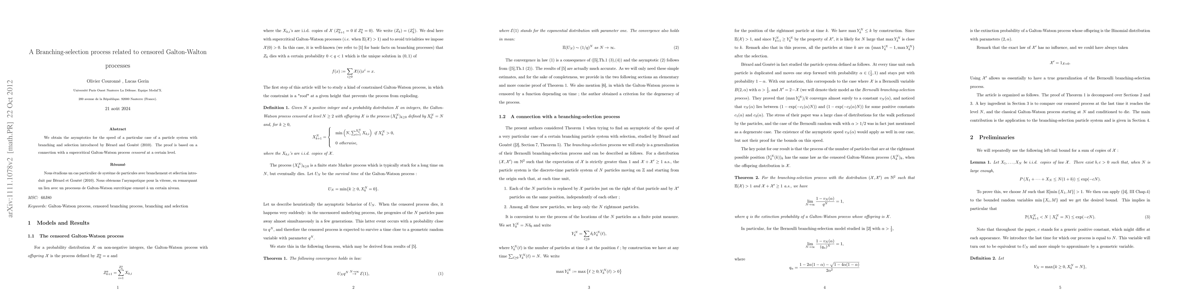 We obtain the asymptotics for the speed of a particular case of a particle system with branching and selection introduced by B\'erard and Gou\'er\'e (2010). The proof is based on a connection with a supercritical Galton-Watson process censored at a certain level.