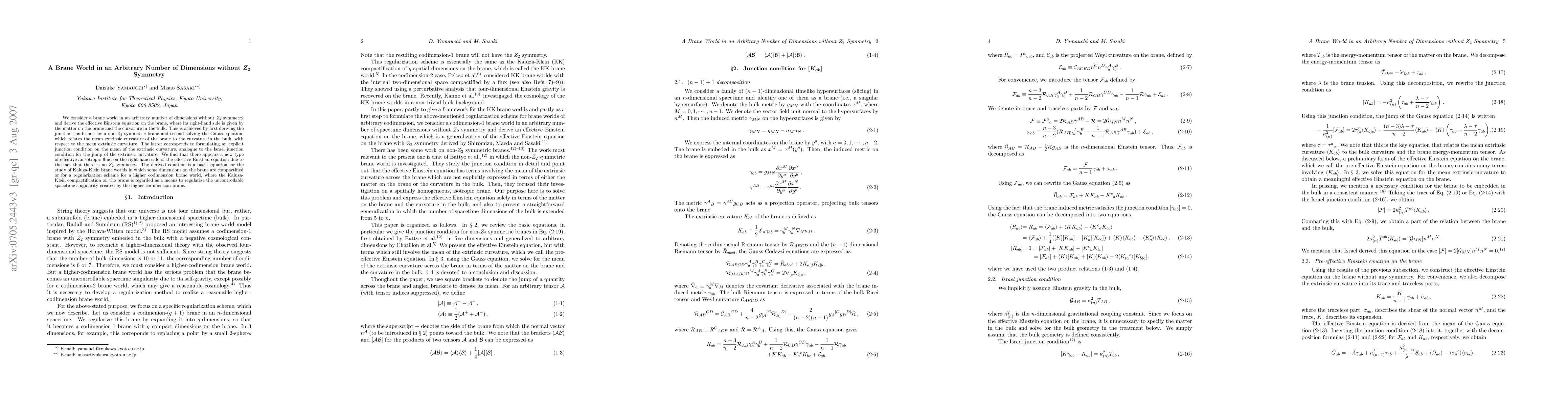 We consider a brane world in an arbitrary number of dimensions without Z_2 symmetry and derive the effective Einstein equation on the brane, where its right-hand side is given by the matter on the brane and the curvature in the bulk. This is achieved by first deriving the junction conditions for a non-Z_2 symmetric brane and second solving the Gauss equation, which relates the mean extrinsic curvature of the brane to the curvature in the bulk, with respect to the mean extrinsic curvature. The latter corresponds to formulating an explicit junction condition on the mean of the extrinsic curvature, analogue to the Israel junction condition for the jump of the extrinsic curvature. We find that there appears a new type of an effective anisotropic fluid on the right-hand side of the effective Einstein equation due to the fact that there is no Z_2 symmetry. The derived equation is a basic equation for the study of Kaluza-Klein brane worlds in which some dimensions on the brane are compactified or for a regularization scheme for a higher codimension brane world, where the Kaluza-Klein compactification on the brane is regarded as a means to regularize the uncontrollable spacetime singularity caused by the higher codimension brane.