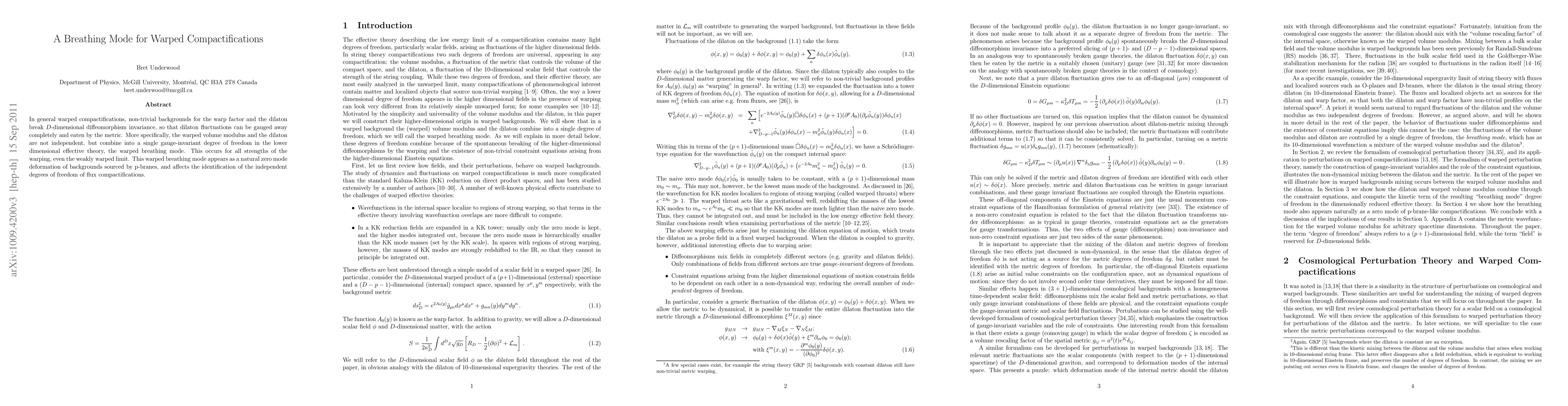 This paper explores how non-trivial warp factors and dilatons in warped compactifications lead to a single gauge-invariant degree of freedom known as the warped breathing mode, which combines the warped volume modulus and the dilaton, affecting the identification of independent degrees of freedom in flux compactifications. This phenomenon occurs across all warping strengths, including the weakly warped limit.
