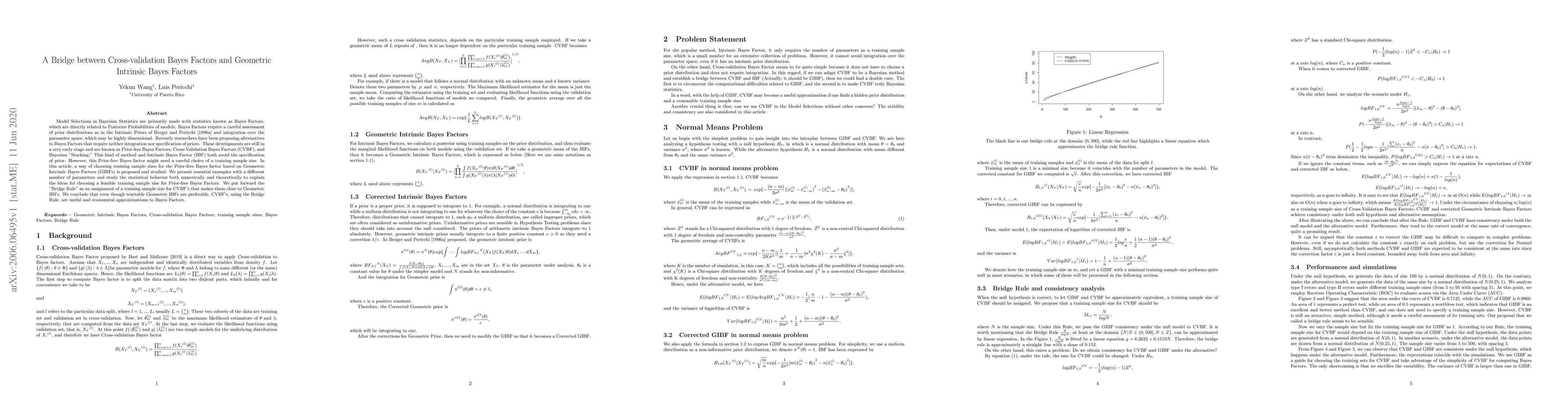 This paper proposes a method to select training sample sizes for Cross-Validation Bayes Factors (CVBF) based on Geometric Intrinsic Bayes Factors (GIBFs), introducing the "Bridge Rule" to approximate GIBFs. It demonstrates that CVBFs, using this rule, provide economical and practical alternatives to Bayes Factors.