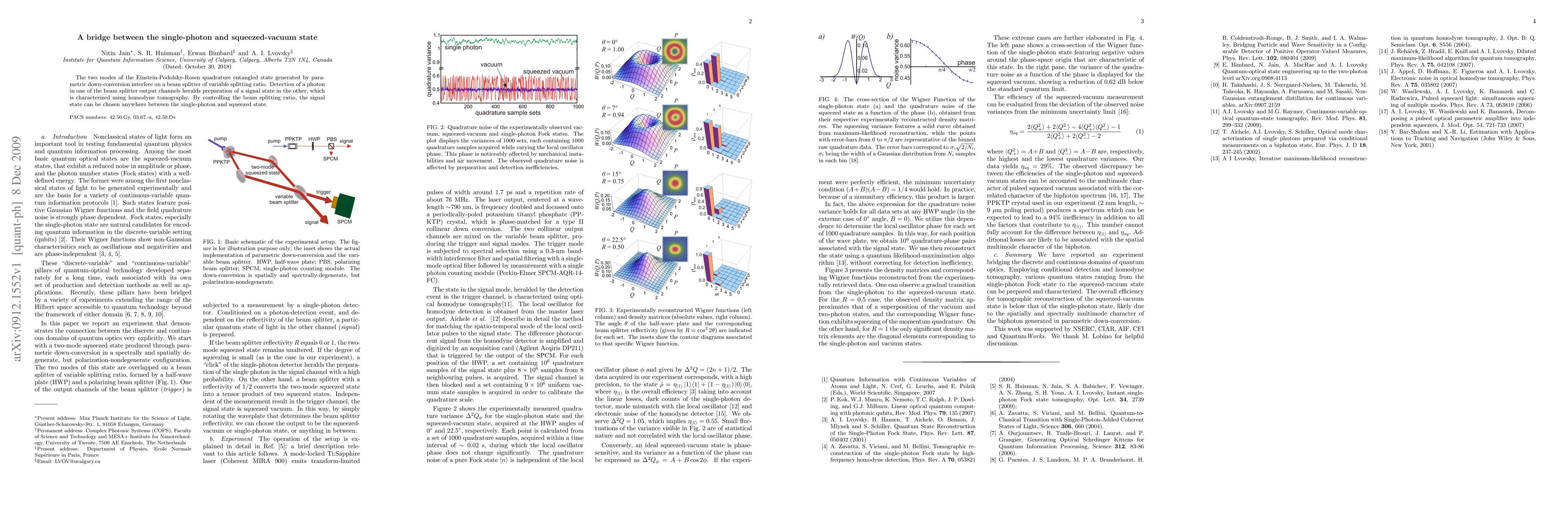 The two modes of the Einstein-Podolsky-Rosen quadrature entangled state generated by parametric down-conversion interfere on a beam splitter of variable splitting ratio. Detection of a photon in one of the beam splitter output channels heralds preparation of a signal state in the other, which is characterized using homodyne tomography. By controlling the beam splitting ratio, the signal state can be chosen anywhere between the single-photon and squeezed state.