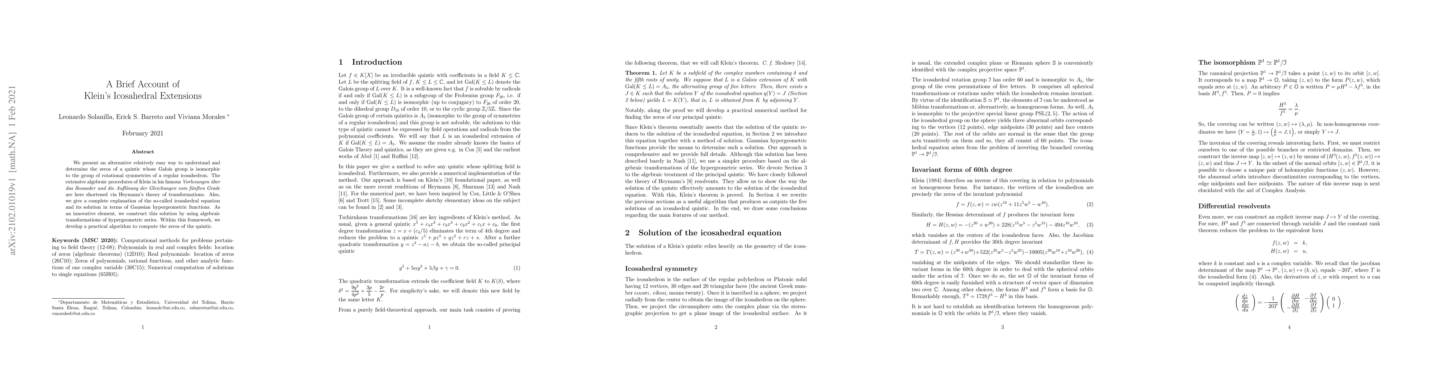 The paper introduces an innovative algorithm for solving quintics via icosahedral extensions, simplifying Klein's original extensive algebraic procedures.