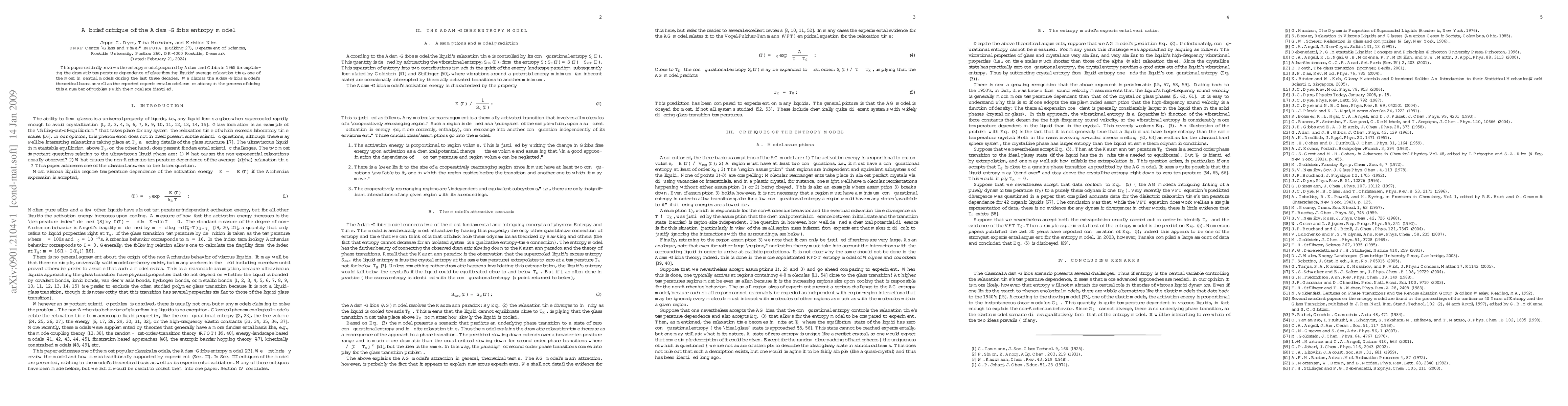 This paper critiques the influential Adam-Gibbs entropy model from 1965, which explains the temperature dependence of glass-forming liquids' relaxation times, highlighting both its theoretical foundations and experimental validations, while also identifying several inherent issues with the model.