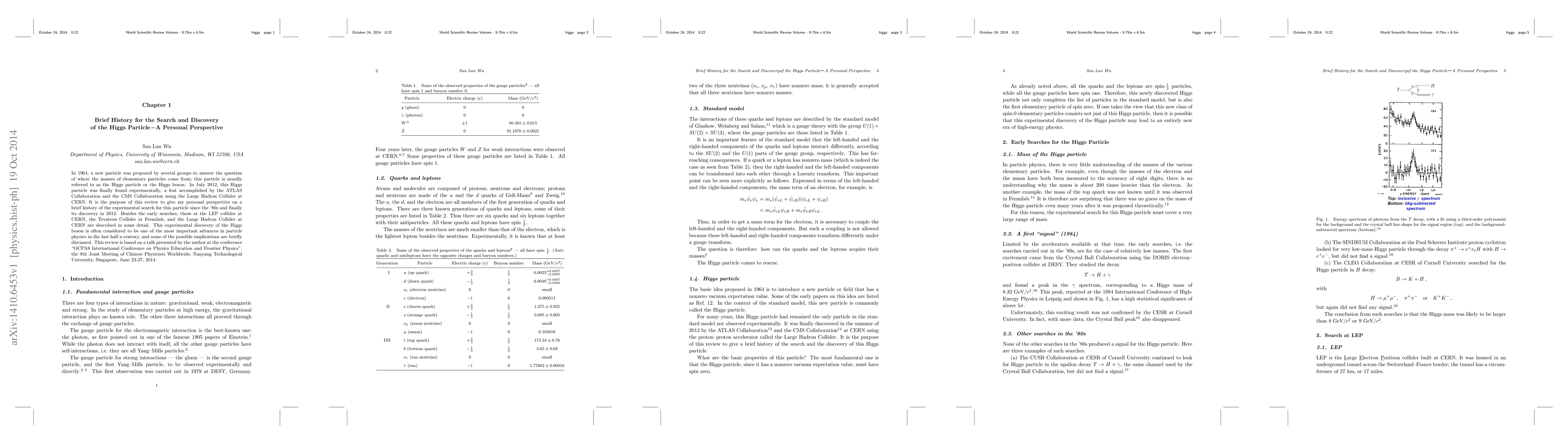 In 1964, a new particle was proposed by several groups to answer the question of where the masses of elementary particles come from; this particle is usually referred to as the Higgs particle or the Higgs boson. In July 2012, this Higgs particle was finally found experimentally, a feat accomplished by the ATLAS Collaboration and the CMS Collaboration using the Large Hadron Collider at CERN. It is the purpose of this review to give my personal perspective on a brief history of the experimental search for this particle since the '80s and finally its discovery in 2012. Besides the early searches, those at the LEP collider at CERN, the Tevatron Collider at Fermilab, and the Large Hadron Collider at CERN are described in some detail. This experimental discovery of the Higgs boson is often considered to be one of the most important advances in particle physics in the last half a century, and some of the possible implications are briefly discussed. This review is based on a talk presented by the author at the conference "OCPA8 International Conference on Physics Education and Frontier Physics", the 8th Joint Meeting of Chinese Physicists Worldwide, Nanyang Technological University, Singapore, June 23-27, 2014.