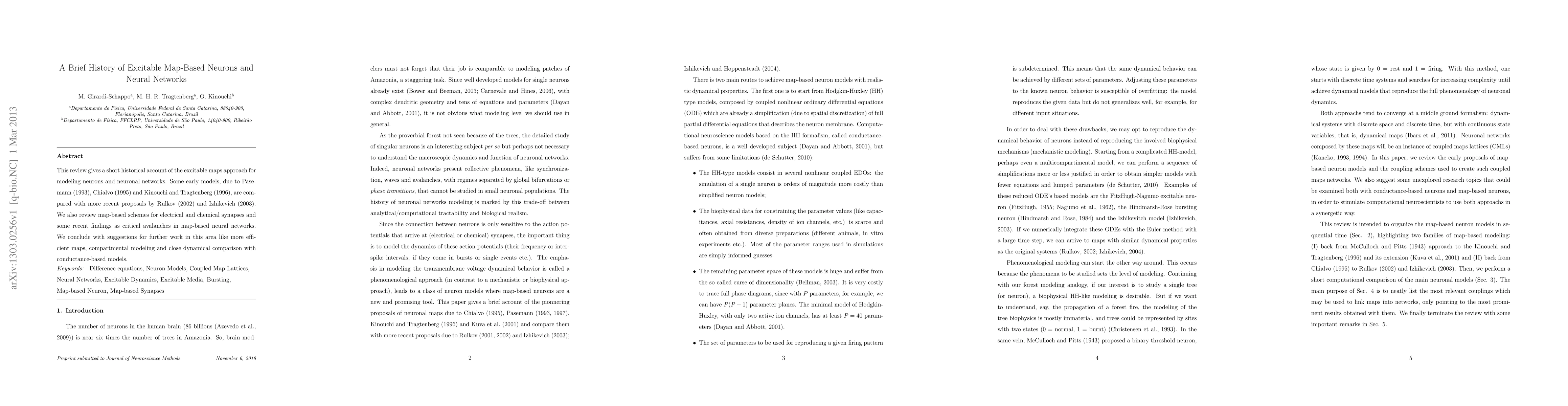 This review explores the history of excitable map-based neurons and neural networks, comparing early models with recent proposals and suggesting future work directions such as more efficient maps and compartmental modeling.