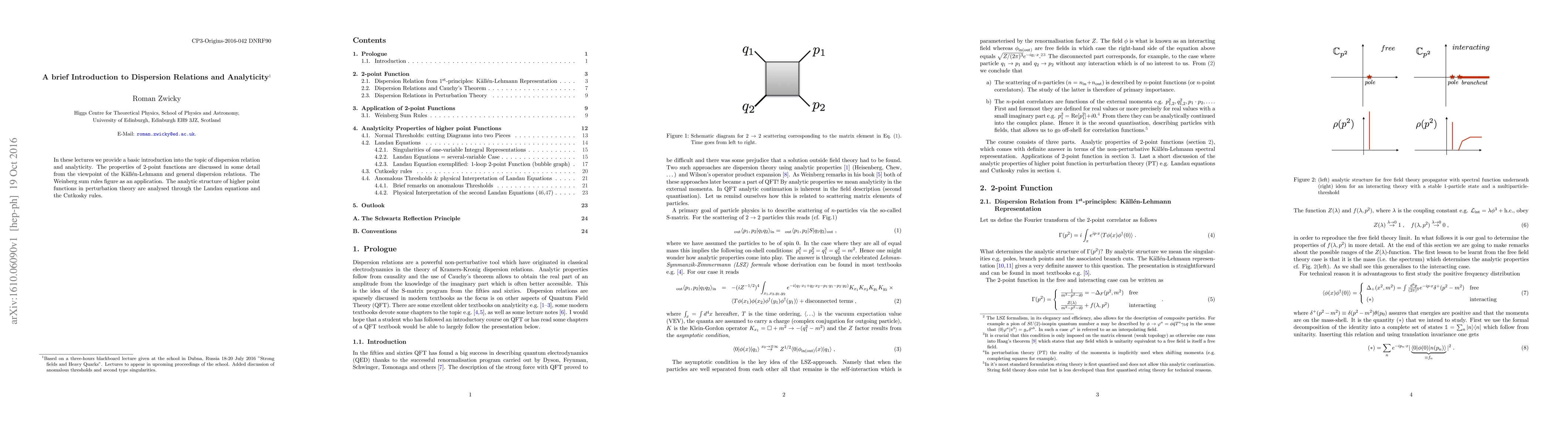 This paper introduces dispersion relations and analyticity in physics, exploring their properties and applications in 2-point functions and higher point functions through the K"all"en-Lehmann and Landau equations.